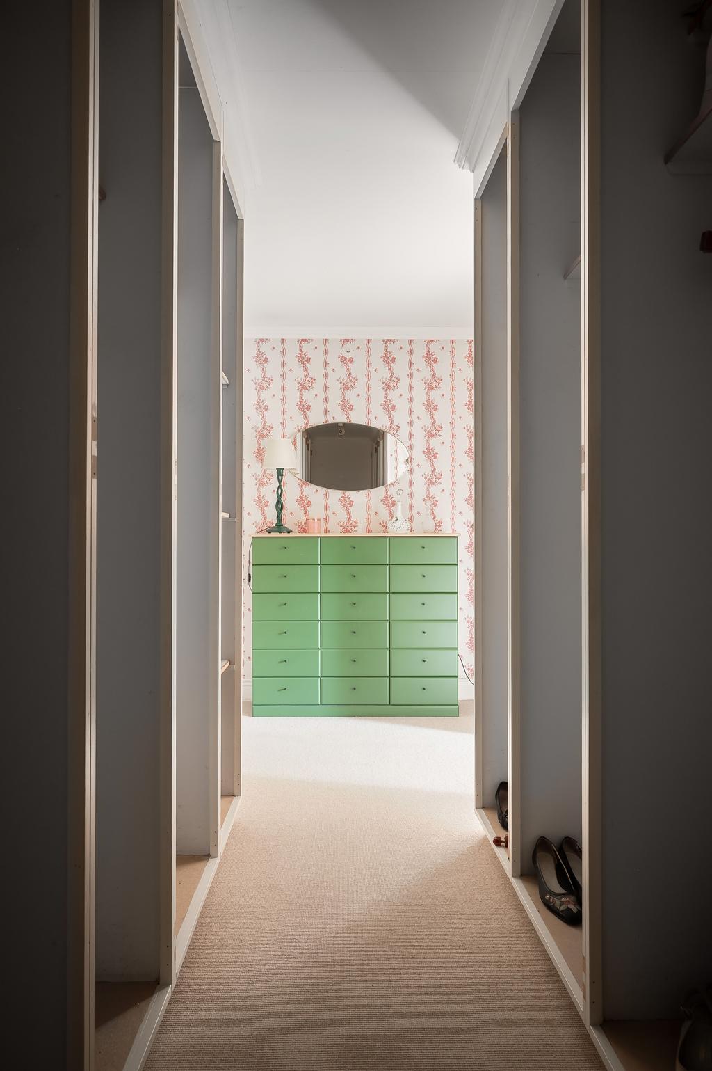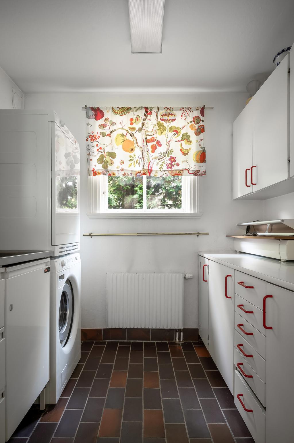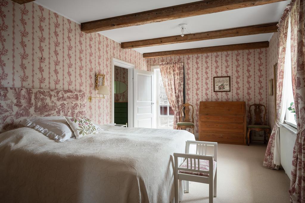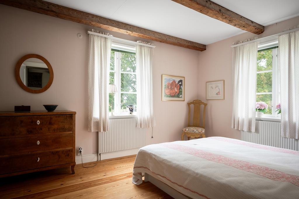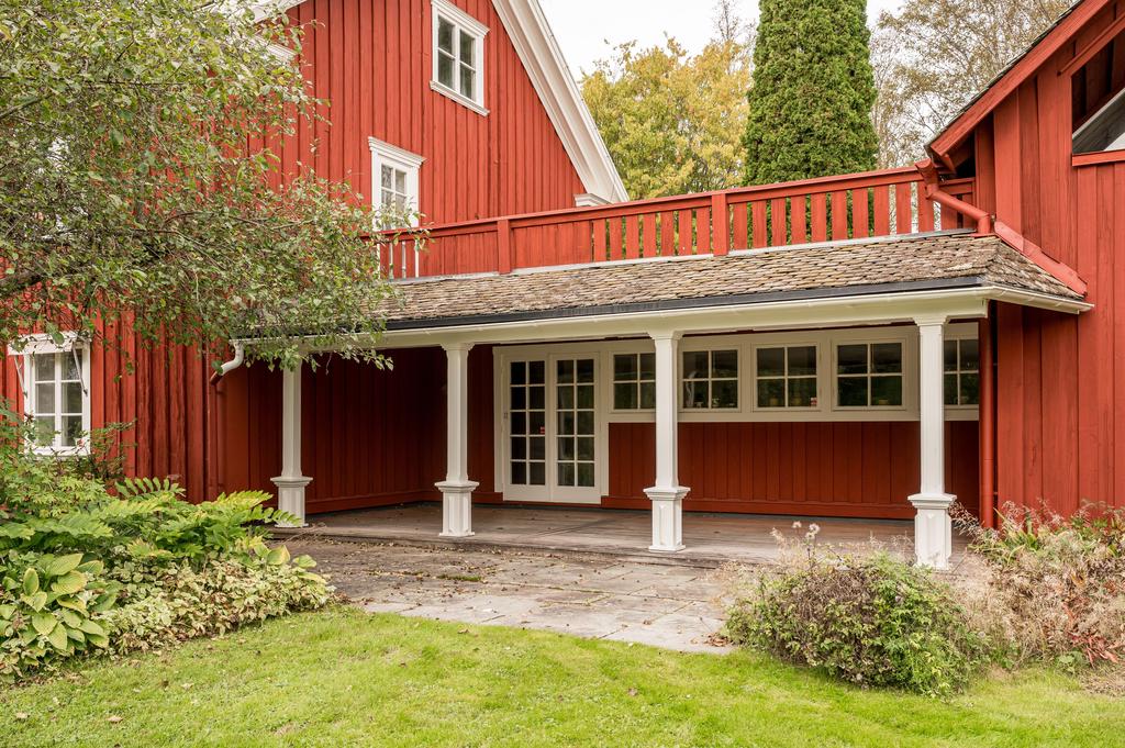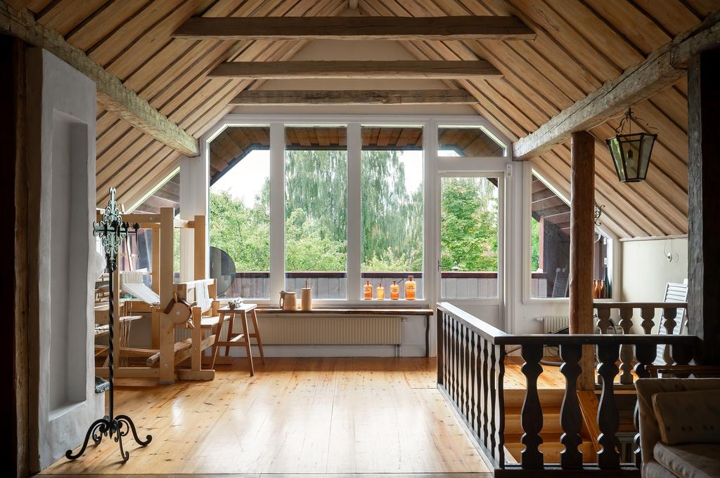 På övre plan, i den vinkelbyggda delen av huset, finns ett stort allrum som kan användas för riktigt stora sällskap, eller varför inte som en kreativ ateljé för den som behöver generösa utrymmen för sitt skapande. Här finns även ett stort utrymme som idag används som snickarverkstad, men som kan bli en del av ateljén eller förvandlas till ett extra sovrum – perfekt för den som vill ha flexibla lösningar i hemmet.