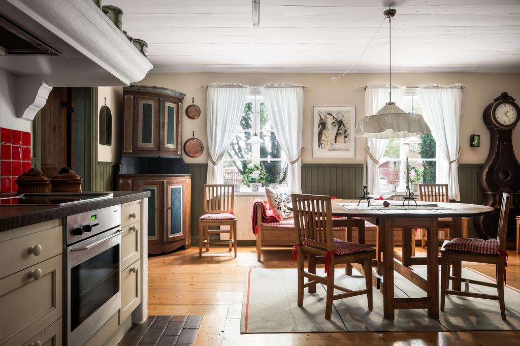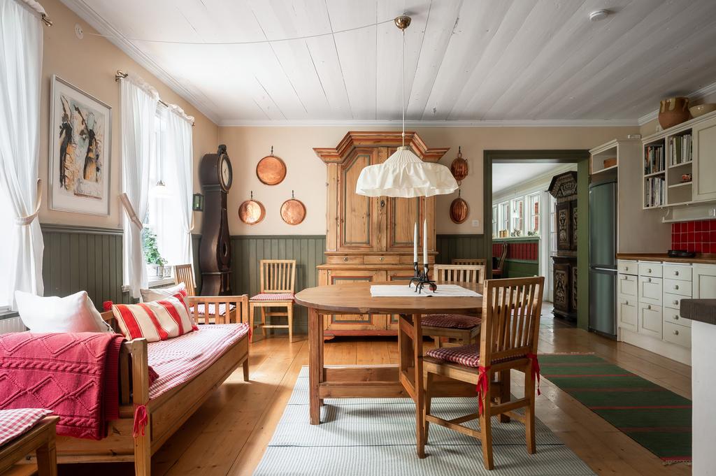 Villan pryds av ett klassiskt skiffertak och många av de ursprungliga, vackra detaljerna har bevarats – från charmiga brädtak till gedigna trägolv och vackra fönsterpartier som släpper in ett mjukt, naturligt ljus. Den generösa planlösningen ger plats för både familjeliv, avkoppling och festligheter.