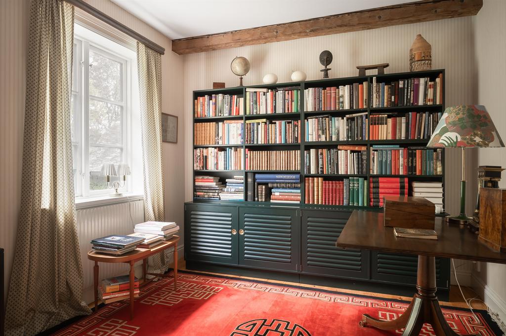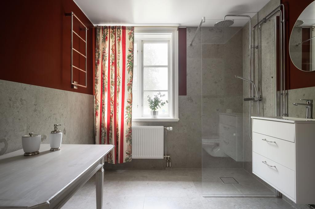 På övre plan möts man av en rymlig, möblerbar hall som fungerar som en social samlingsplats. Här finns en lyxig master bedroom med egen walk-in closet och ett privat badrum, utgång till den stora terrassen – perfekt för morgonkaffe eller sommarens grillkvällar. Dessutom finns ytterligare ett sovrum, ett kontor samt ett bibliotek för den litteraturintresserade. Här finns också ett stort, nyrenoverat duschrum som ger extra bekvämlighet.