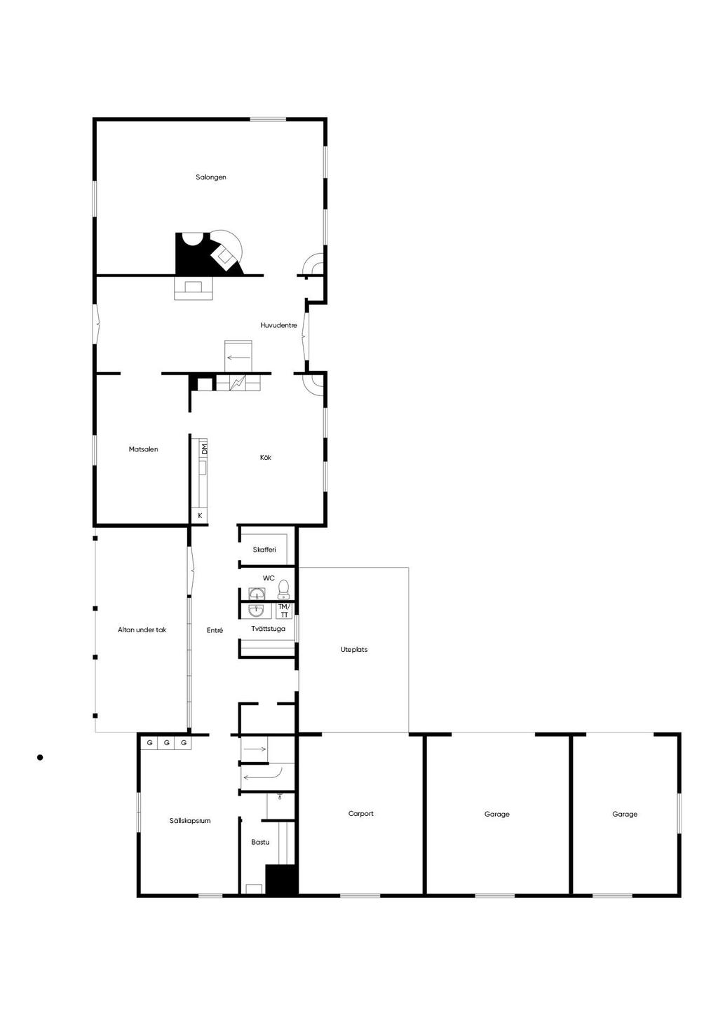Till huset hör även två garage och en praktisk carport, vilket gör vardagen enkel och bekväm.