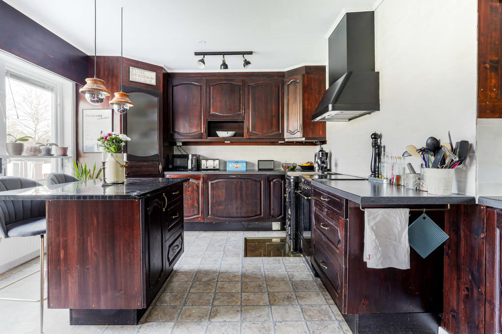 Fastighet med 2 villor, dubbel-varmgarage, kall-förråd, maskinhall och carportar