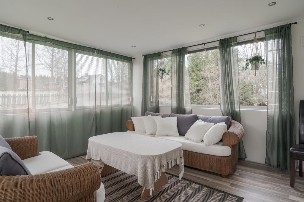 Trivsamt hem med relaxavdelning, uterum och stor altan runt huset