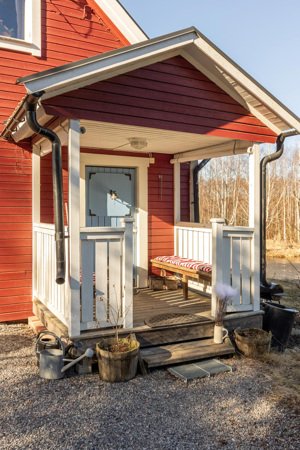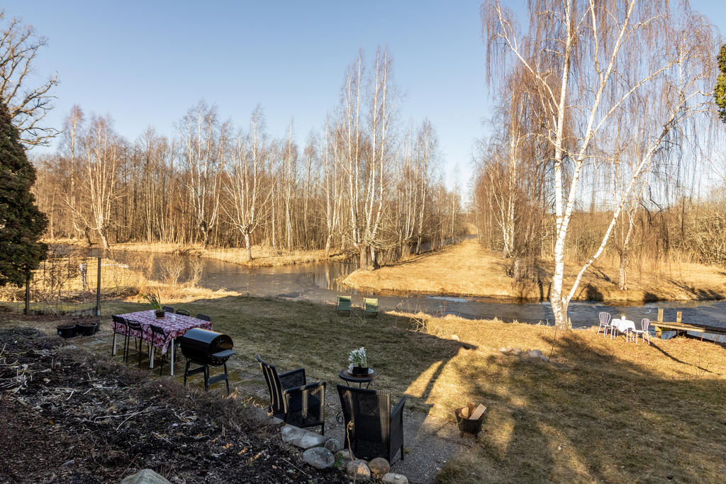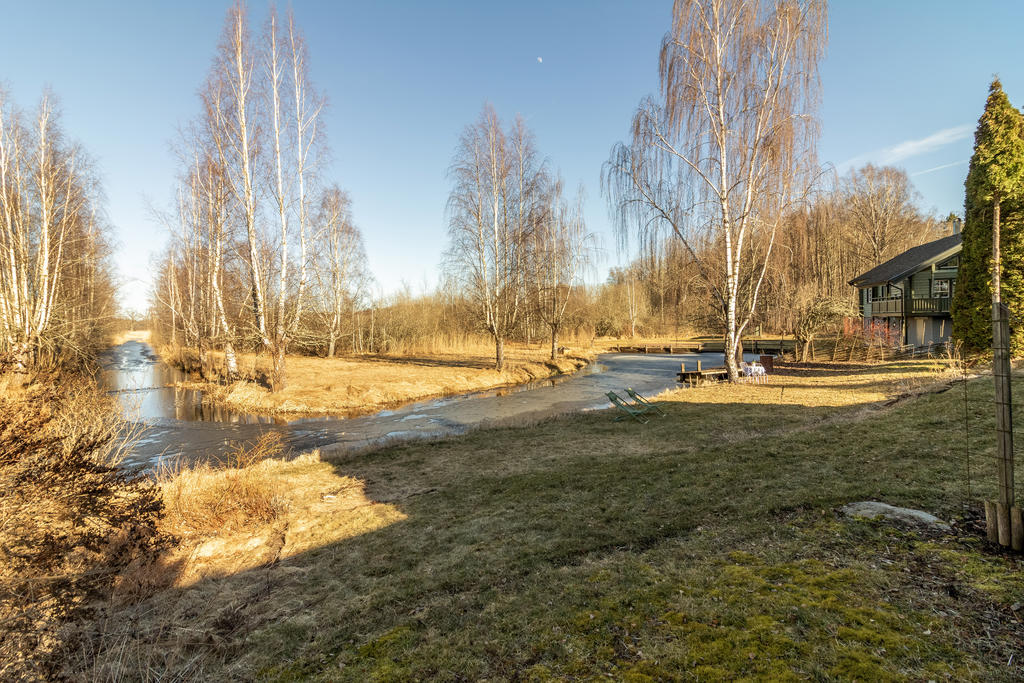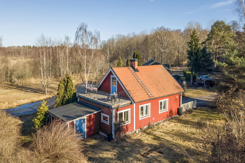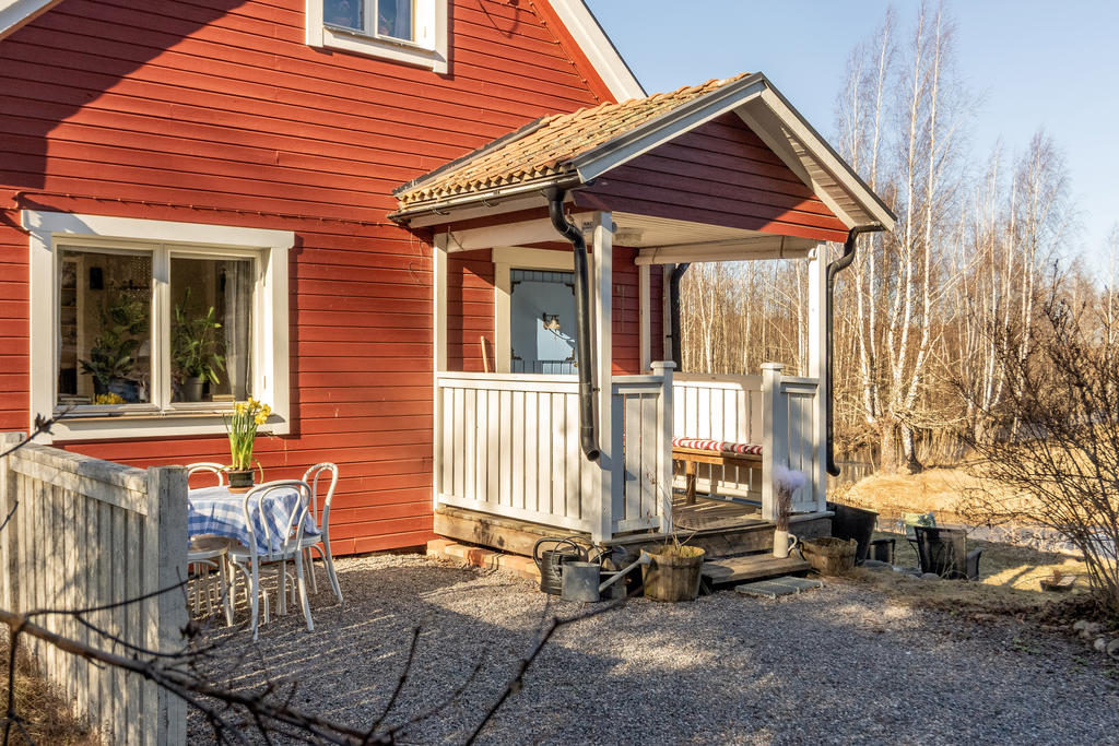 Strax intill Sandabadet finner vi Nyckelövägen 13. Redan på uppfarten känner man lugnet som vattnet skänker och fastighetens lantliga charm. Den faluröda villan har klassiskt vita knutar och nylagt tegeltak. Trädgården är uppväxt och helt insynsskyddad mot de få grannarna. Strax blommar påskens solgula forsythia, krokus och skilla i gräsmattan, därefter följer försommarens doft av schersmin och syrén. Björkarnas skira grönska i kontrast mot dess svart-vita stammar utmed kanalens blänkande vattenspegel gör att trädgården nästan känns som en Monet-tavla. Nere vid bryggan ligger båten förtöjd och i boden finns både fiskespön och flytvästar. I den lilla röda boden med den blå dörren finns reden kvar sedan den beboddes av 5 st höns som även strövade fritt i trädgården. Den omgivande skogen intill är en magisk lekplats och de öppna gräsytorna vid strandkanten har utrymme för både solstolar och sommarens kubbturneringar.