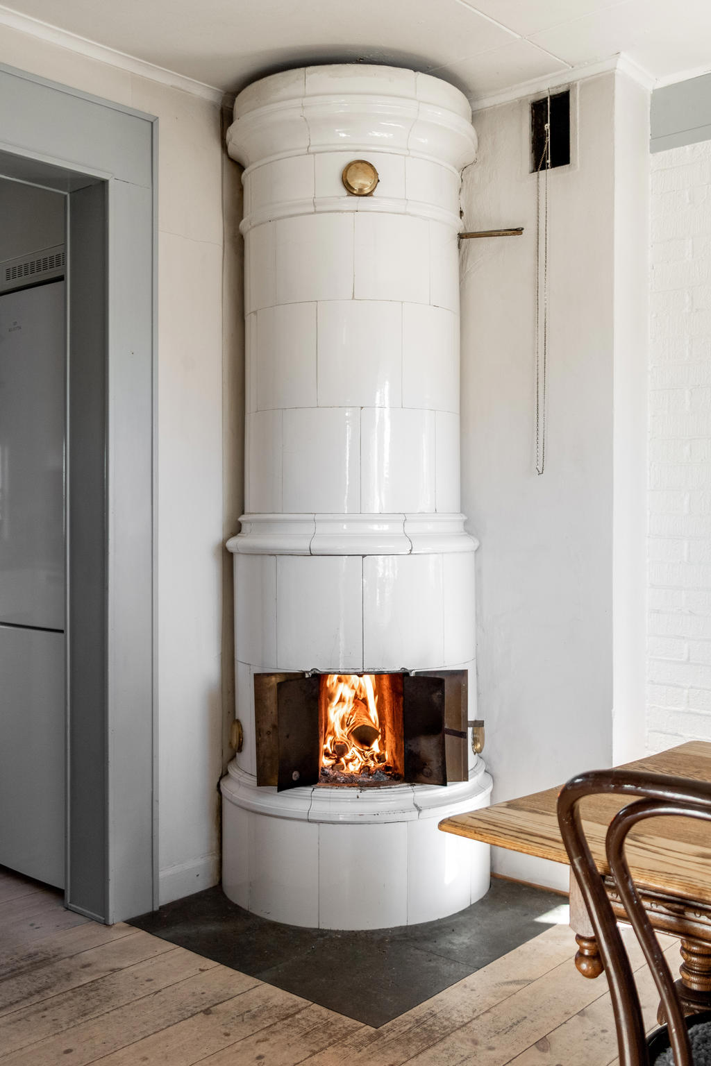 2017 Installation kakelugn samt renovering skorsten. Utfört av Josefsons kakelugnsmakeri. Kakelugnen är tillverkad 1909.