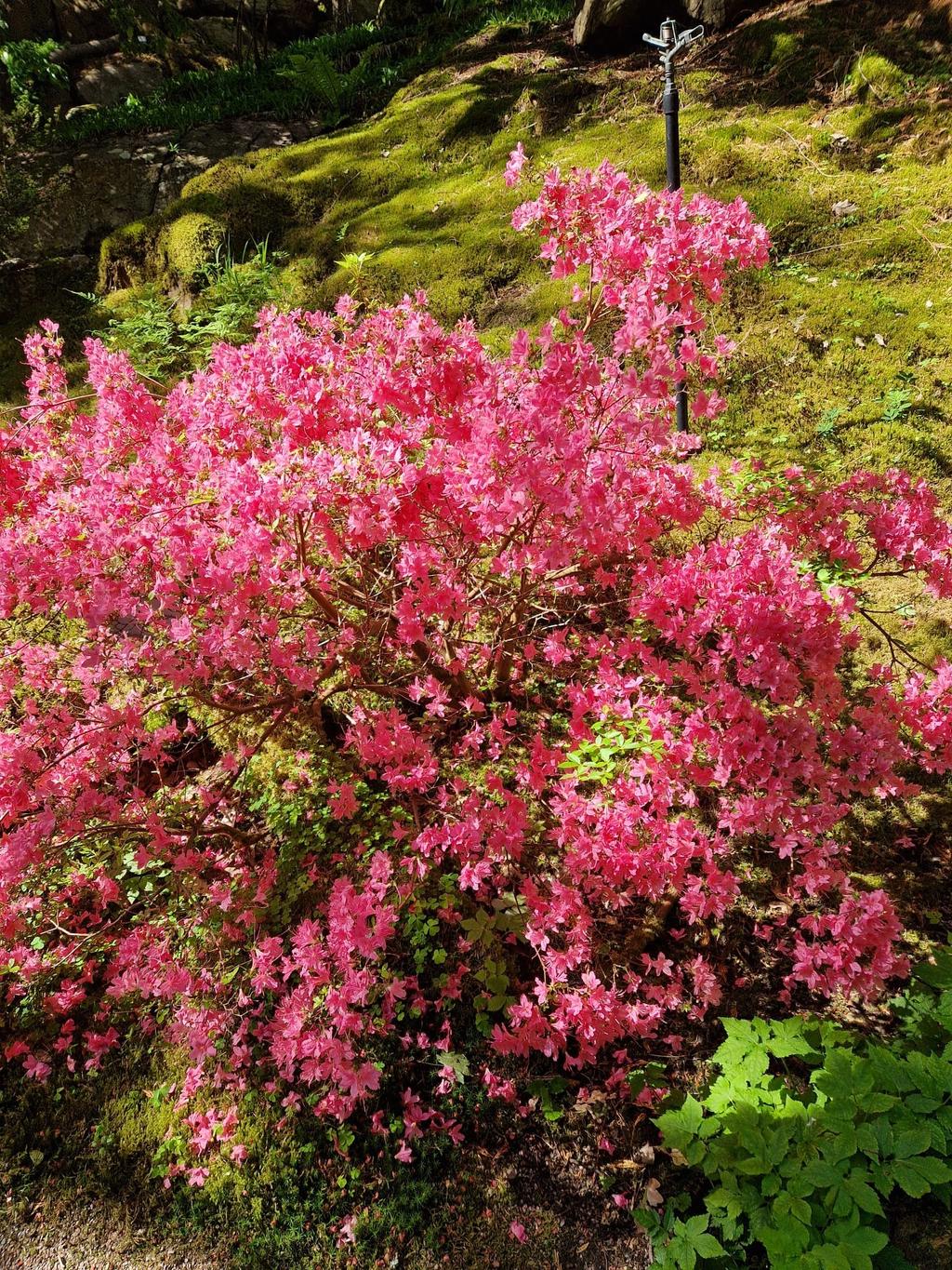 Böljande trädgårdstomt där de öppna gräsytorna planats ut i 2 étage. Trädgården är omgiven av höga häckar, med gärdesgård och tät tuija avgränsande mot närmaste granne. Planteringarna är fyllda av perenner som blommar från tidig vår till sen höst. Här finns bland annat schersmin, forsythia, rhododendron och pioner.