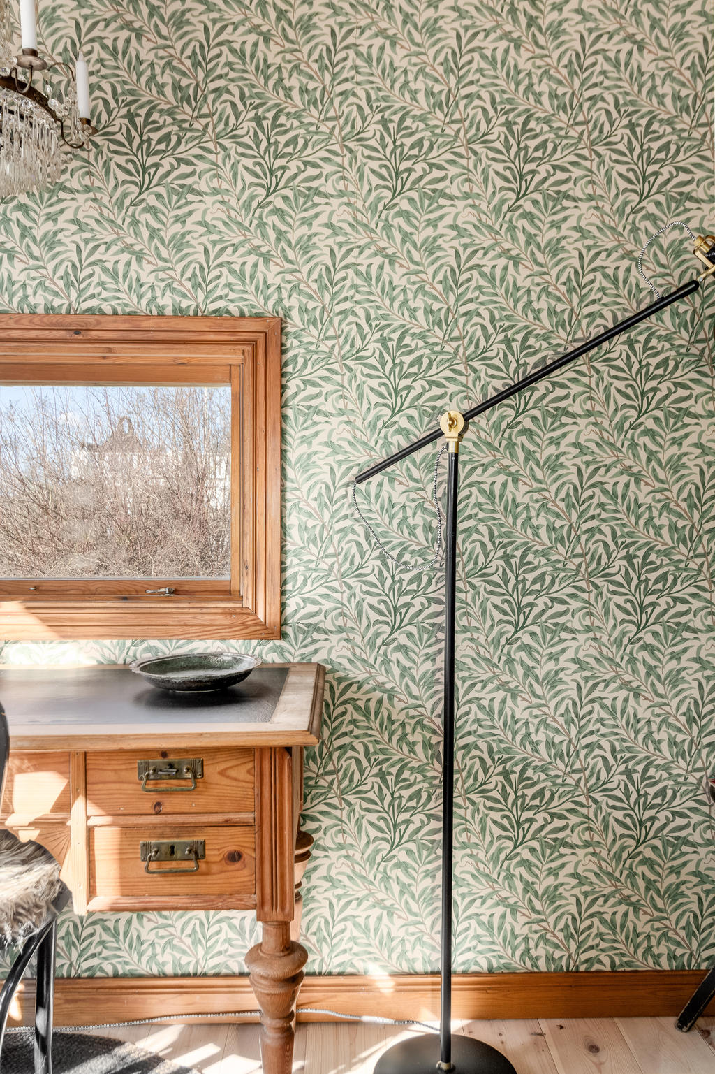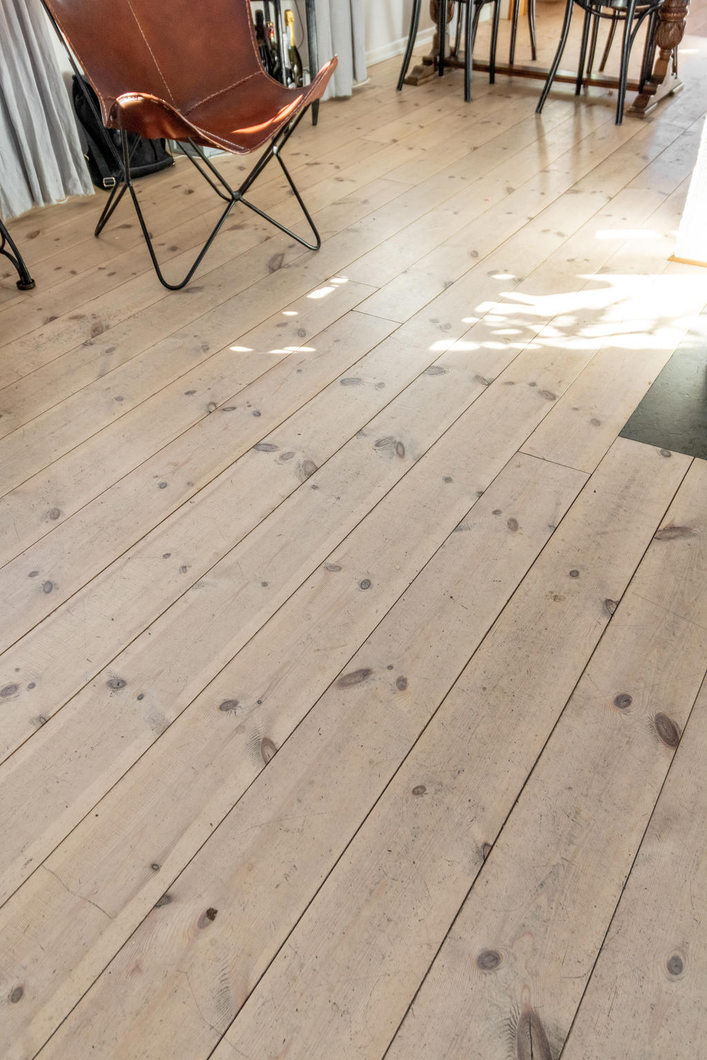 Trägolven är slipade och behandlade med hårdvaxolja.