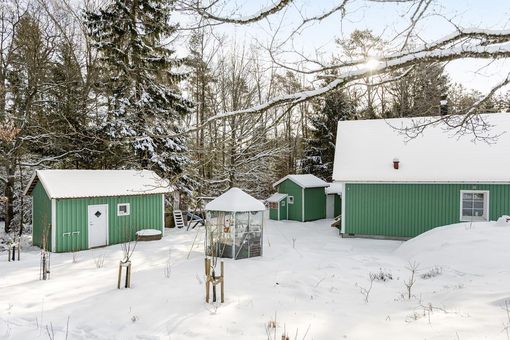 Tomten om hela 2 600 kvadratmeter är något alldeles extra. Trädgården är vild och vacker, formad i samspel med naturen snarare än mot den. Årstiderna får sätta tonen och belöningen är en levande grönska som ständigt förändras. Rhododendronbuskar som blommar praktfullt under försommaren, plats för odling av blommor, bär, grönsaker och frukt, och gott om utrymme för både lek och stilla stunder. Det här är en plats för den som vill njuta av trädgårdsliv utan begränsningar och hissa flaggan på berget vid både födelsedagar och andra högtider.