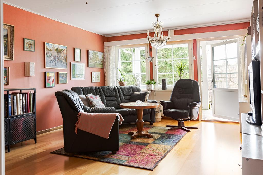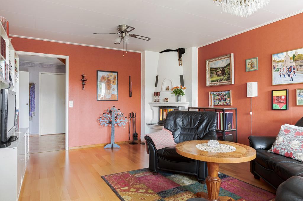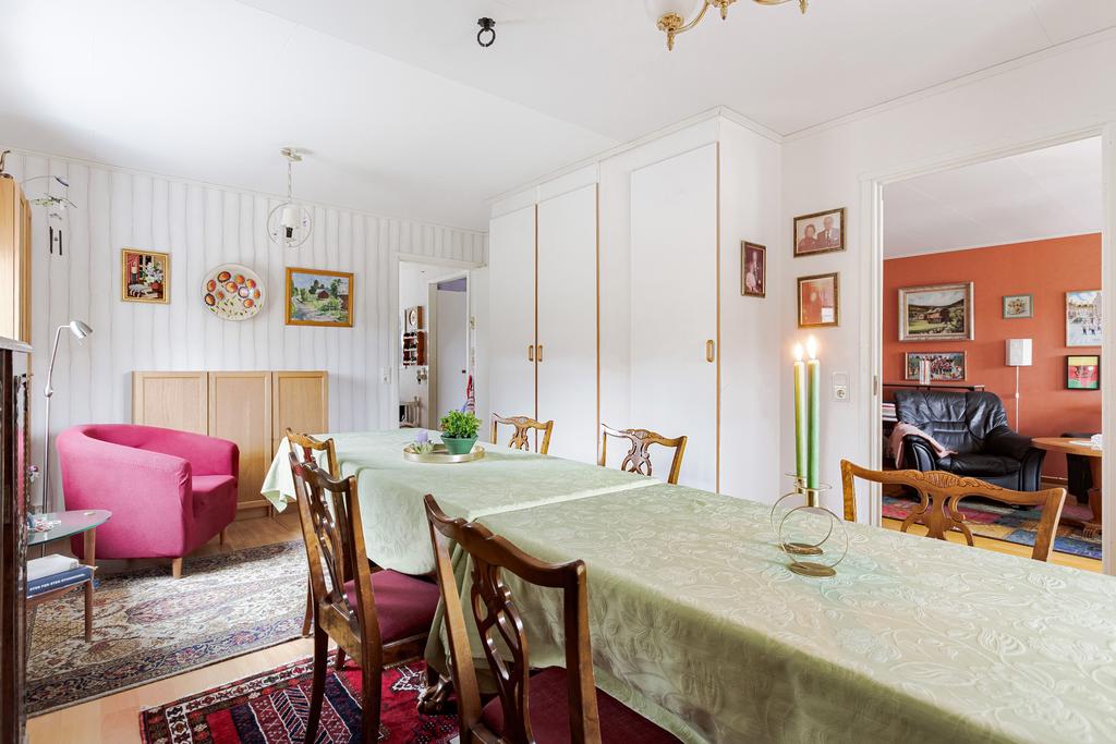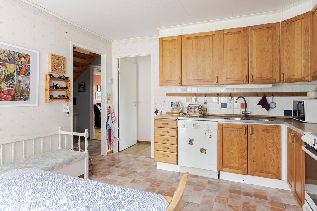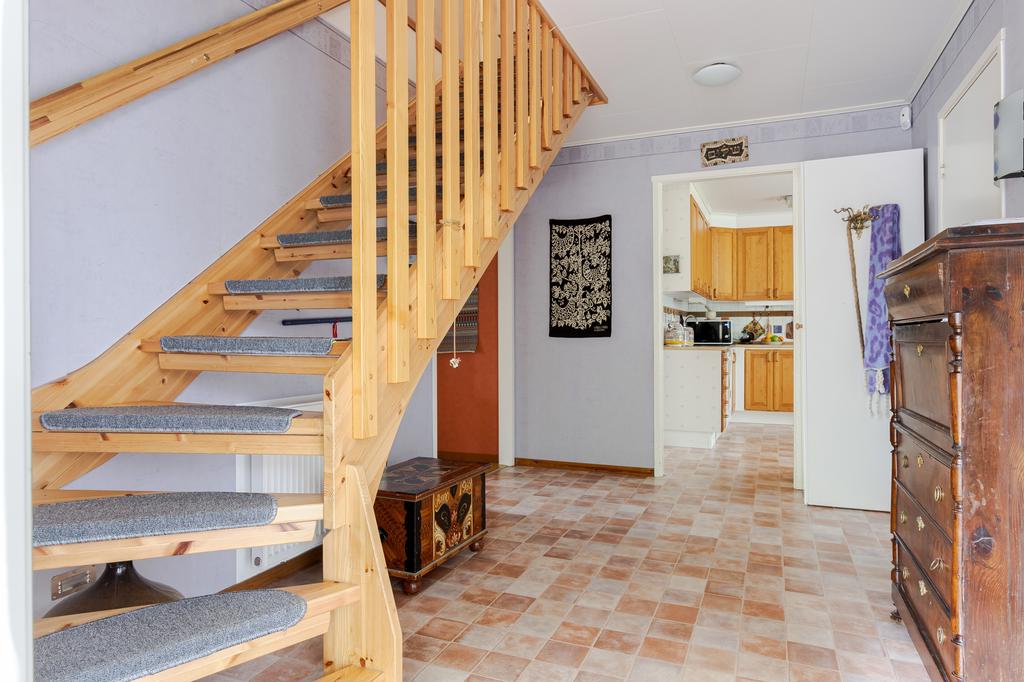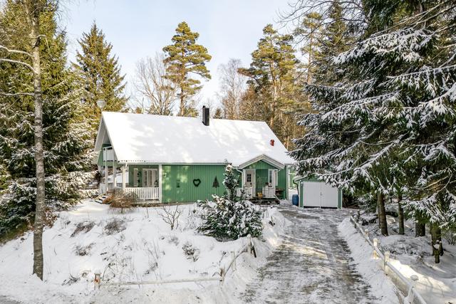 Huset uppfördes 2003 och har sedan dess varit en trygg och varm samlingspunkt. Planlösningen är genomtänkt och hemtrevlig med tre sovrum, där ett har direkt utgång till en generös balkong med utsikt över grönskan. Vardagsrum och matsal binds samman på ett naturligt sätt och bjuder in till både vardagsliv och långa middagar. Köket ligger separat, ett rum där samtalen gärna fortsätter medan maten lagas. Här finns även badrum, gästtoalett samt tvättstuga med groventré – praktiskt och bekvämt i vardagen.