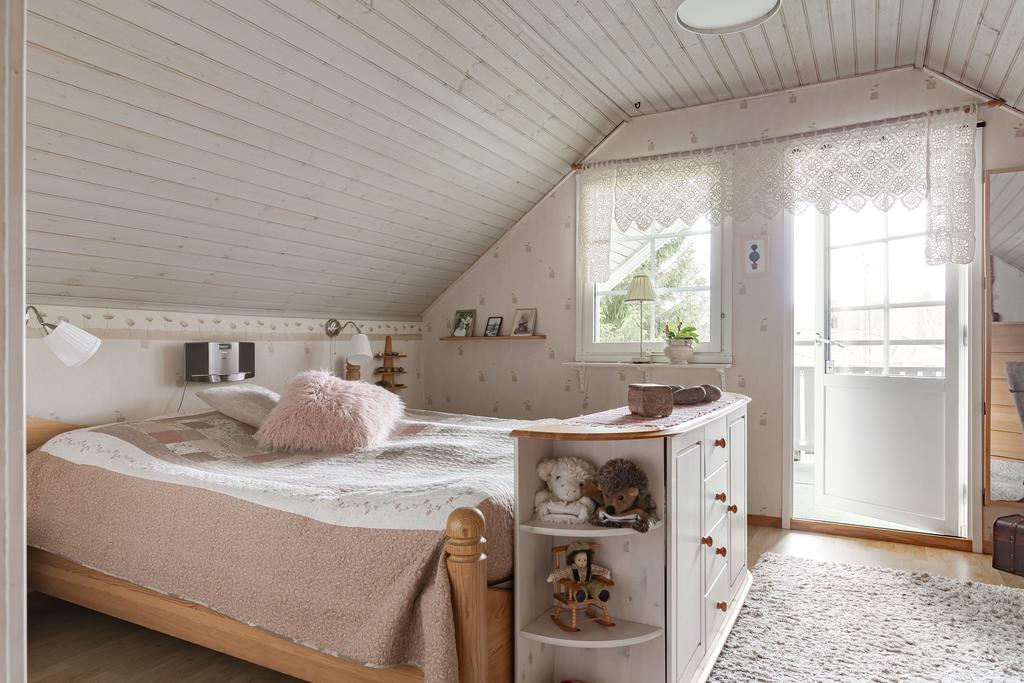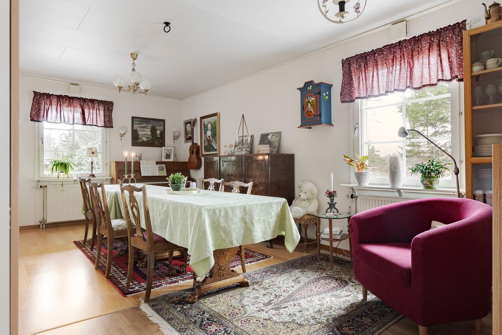 Detta är ett hem som burits av generationer, där familjeliv, somrar, höstar och vintrar har fått ta plats i sin egen takt. Redan vid ankomst infinner sig den där sällsynta känslan av lugn. Bilen stängs av, skogsluften tar vid, tystnaden breder ut sig – bara avbruten av fågelsång och naturens egna ljud. Här är det lätt att andas lite djupare.