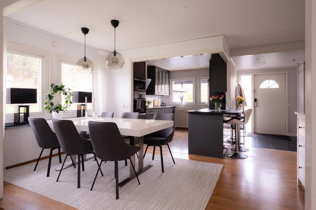 På Norra Ängsvägen 3a möts ni av ett hem där det mesta redan är gjort – ett hus som kombinerar genomtänkta renoveringar, energieffektiv drift och en varm, inbjudande känsla rakt igenom. Här bor ni i Nol med närhet till allt, men med en egen oas på tomten där livet får ta plats i sin egen takt. Huset omfattar generösa 104 + 104 kvadratmeter och erbjuder en flexibel planlösning som passar lika bra för familjeliv som för er som vill ha gott om utrymme för både arbete och fritid. Entréplanet bjuder på en social planlösning där kök, matplats och vardagsrum samspelar naturligt. Ljuset flödar in och skapar en trivsam atmosfär, samtidigt som utgången till det inglasade uterummet och altanen gör det enkelt att förlänga vardagsrummet ut i det fria under årets varmare månader.