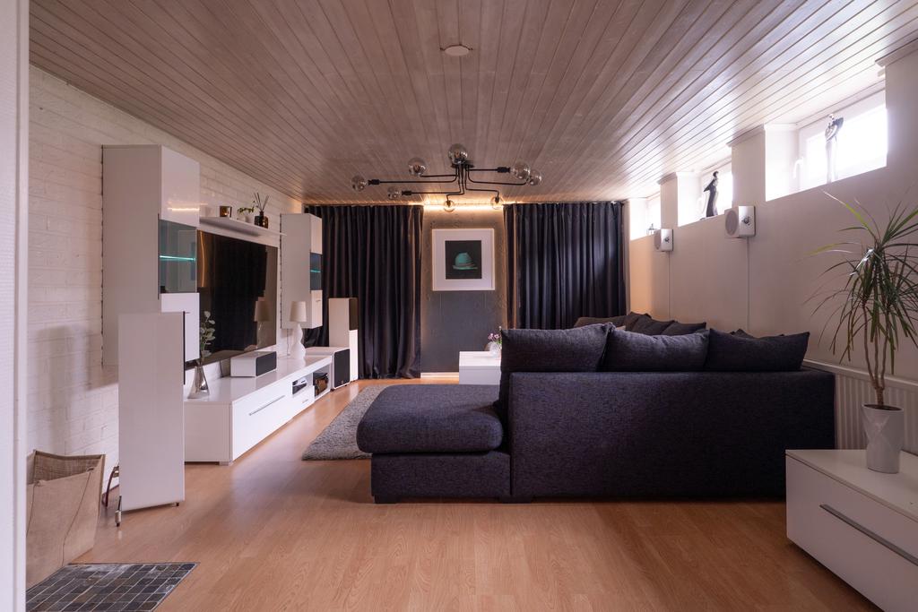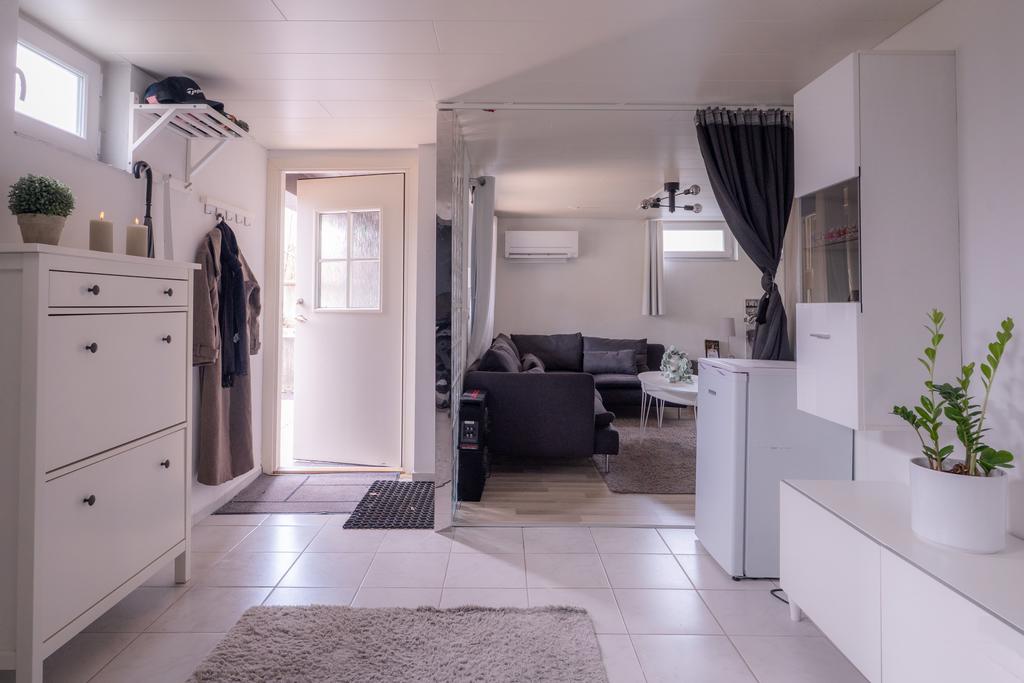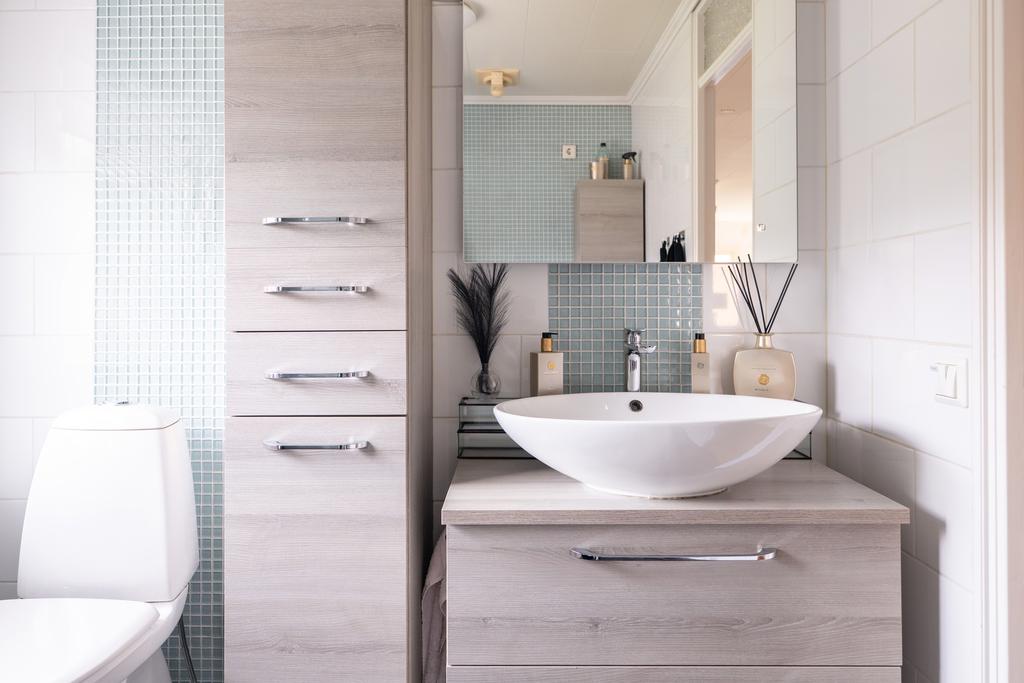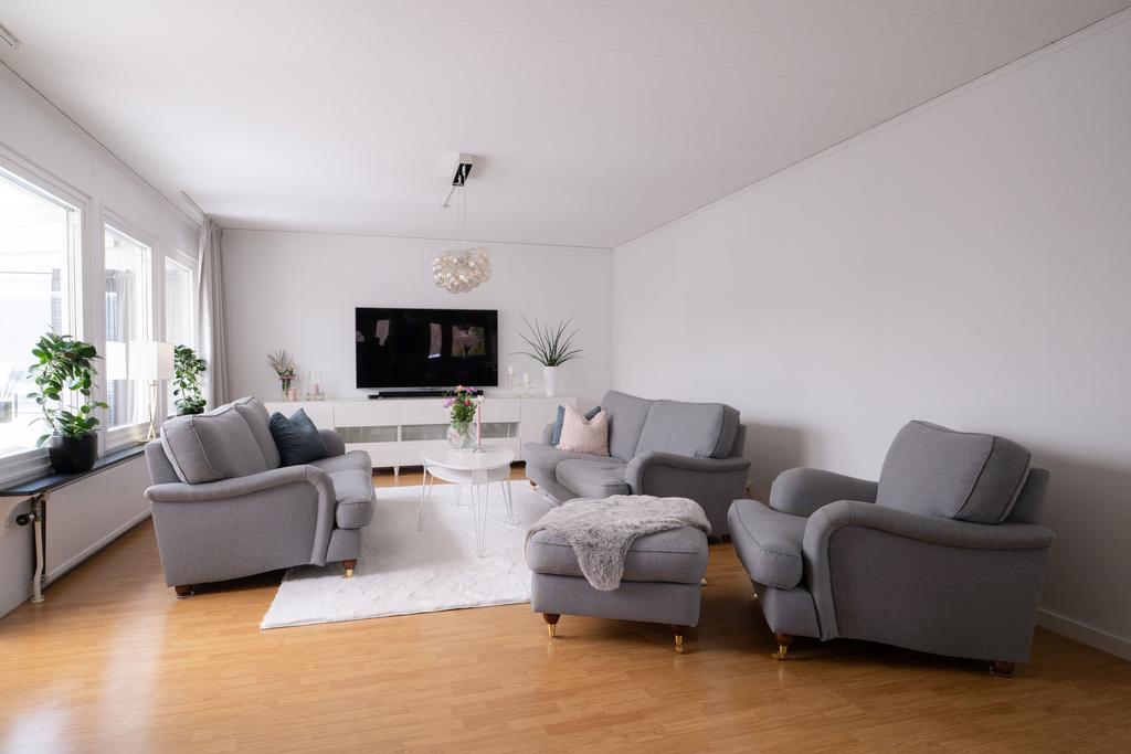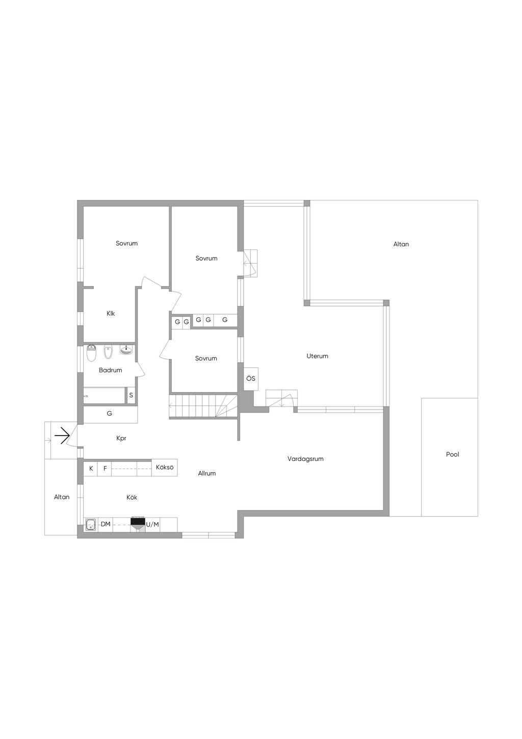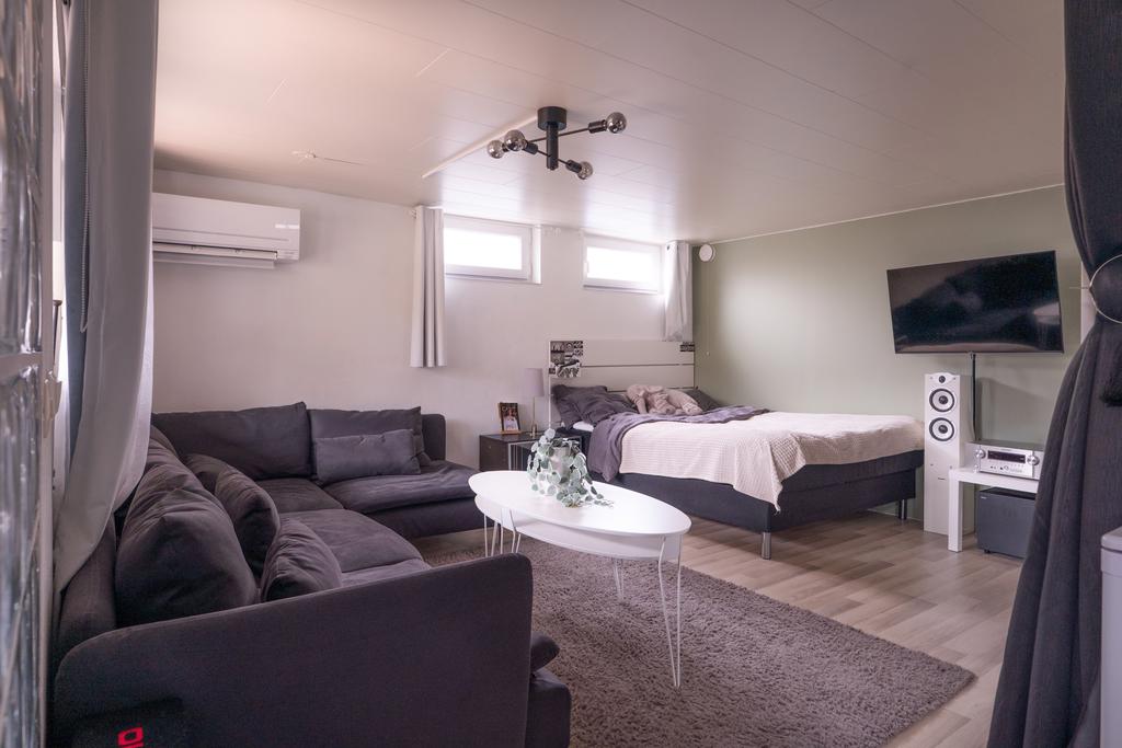På entréplanet finns även flera sovrum samlade på ett praktiskt sätt, tillsammans med badrum och bra förvaringsmöjligheter. En trappa ner öppnar huset upp sig ytterligare med källarplanet – en yta som verkligen ger huset dess flexibilitet. Här finns stora möjligheter för exempelvis tv-rum, lekrum, hemmakontor eller gästrum, tillsammans med ytterligare badrum, tvättstuga och gott om förvaring. Ett hem som enkelt kan anpassas efter livets olika skeden.
