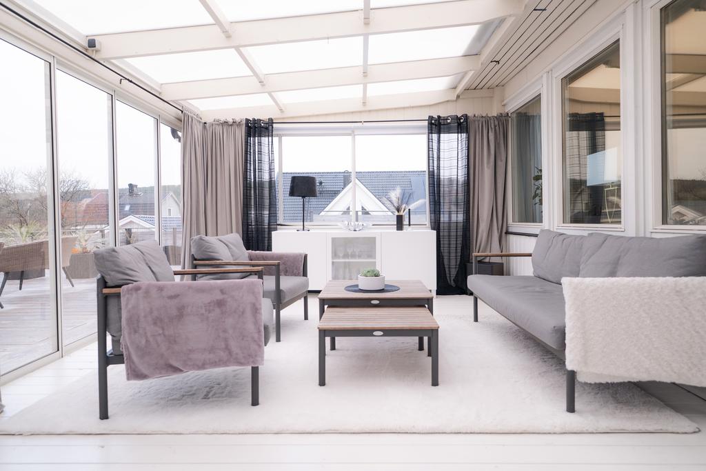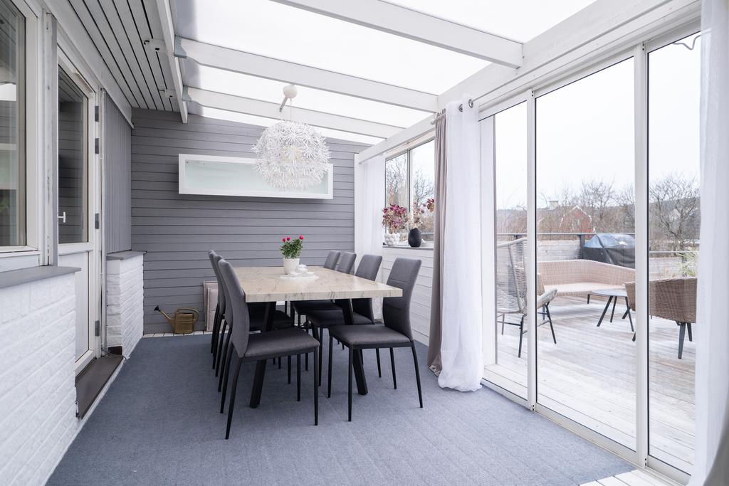 Här ute väntar något alldeles extra. Den väl tilltagna altanen erbjuder sol från morgon till kväll och blir snabbt en favoritplats för både lugna kaffestunder och livliga middagar. Det inglasade uterummet förlänger säsongen ytterligare och gör att ni kan njuta av trädgården långt in på hösten. Poolen, som värms upp och anlades 2022, sätter guldkant på sommarens alla dagar – en självklar samlingspunkt för både stora och små.