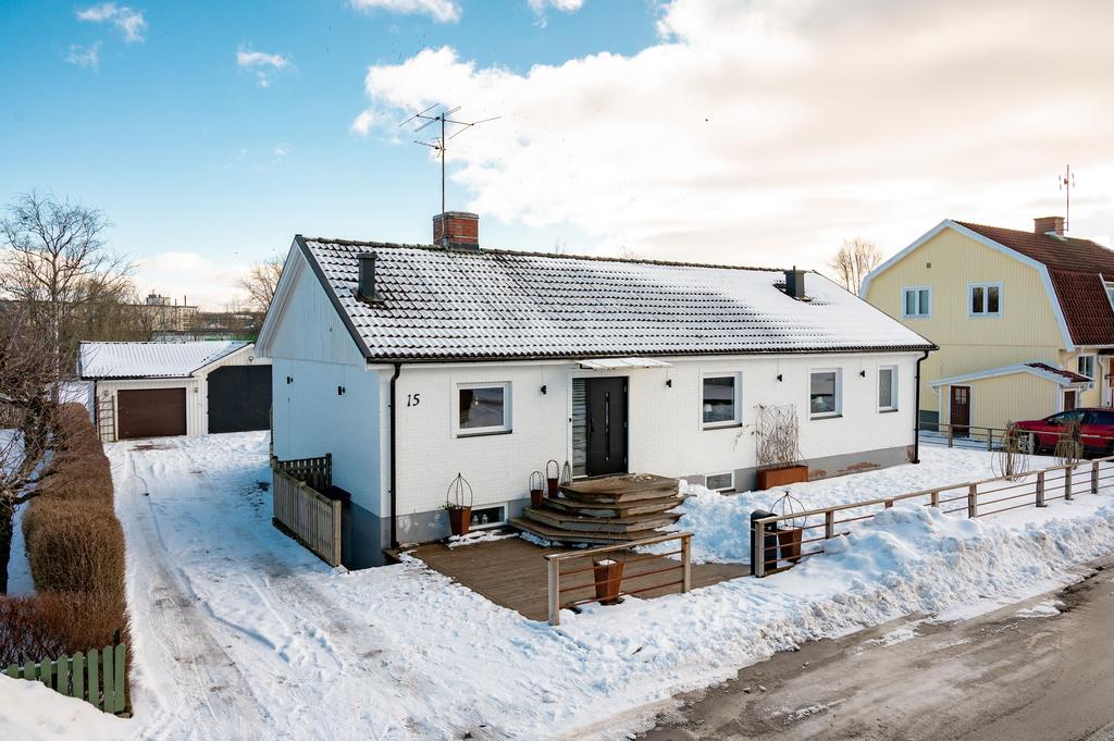 Trivsamt enplanshus med inredd källare och stort dubbelgarage!