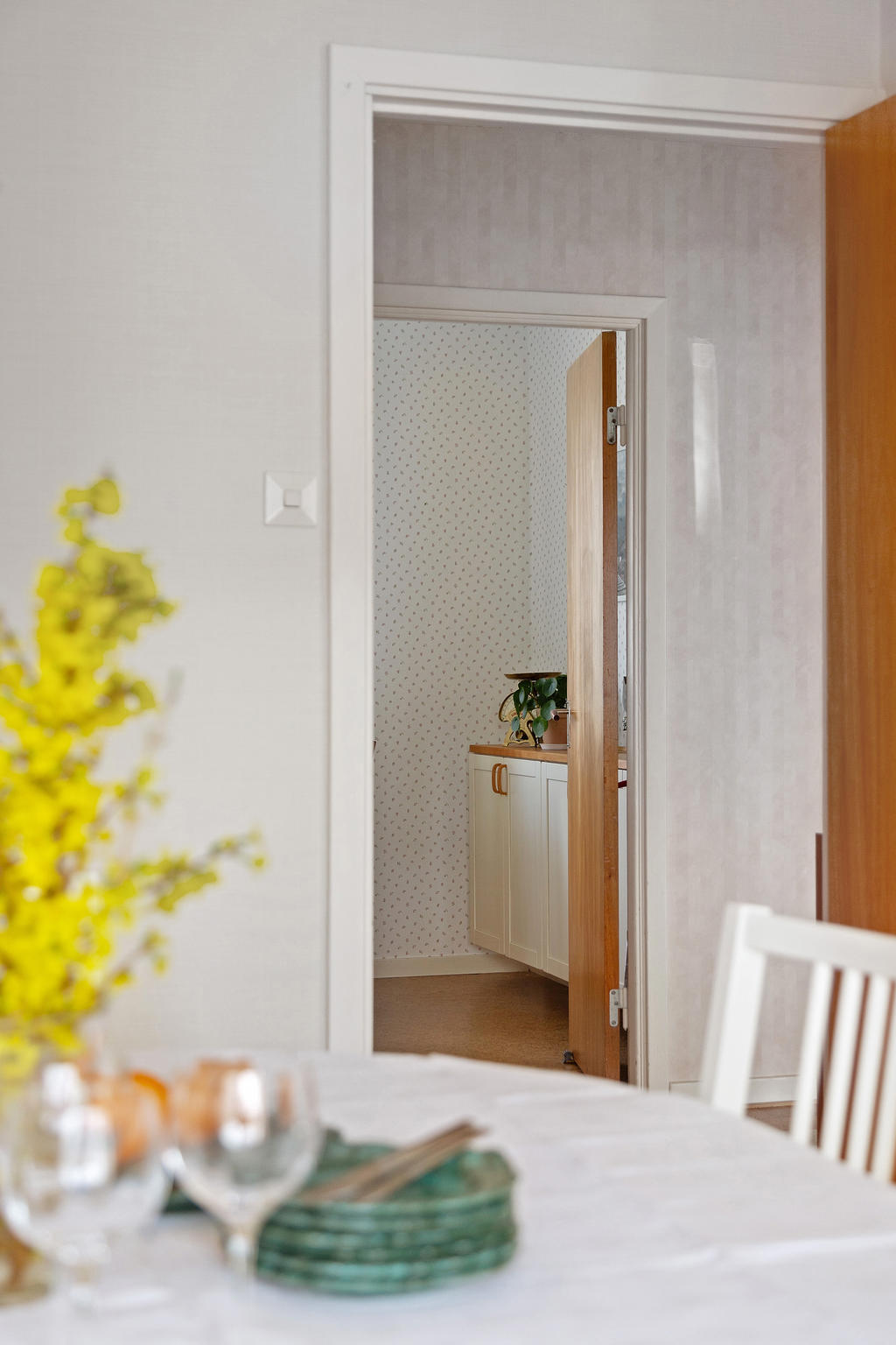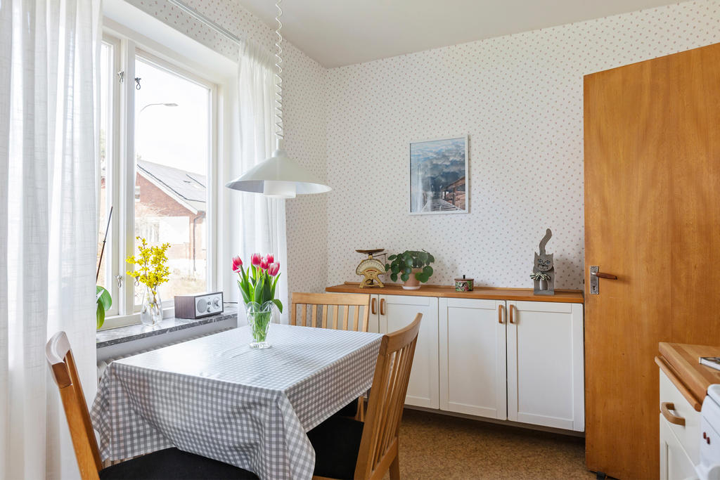 Matsalen inbjuder till stora middagar och festliga tillfällen, med möjlighet att öppna upp mot vardagsrummet och skapa plats för långbord när gästerna blir många. Till vardags samlas man gärna i det trivsamma köket – hemmets hjärta där samtalen får ta plats.
