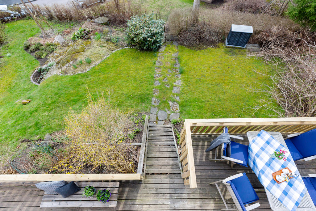 Trädgården är en levande oas där något alltid står i blom. Från tidiga vårtecken som snödroppar och krokus till sensommarens färgprakt av höstaster och kärleksört. Här finns även rabarber, vinbärsbuskar, kryddväxter och plats för egna odlingar. För den som vill ta det ett steg längre finns till och med en frodig humleplanta – perfekt för den som drömmer om att brygga sitt eget öl.