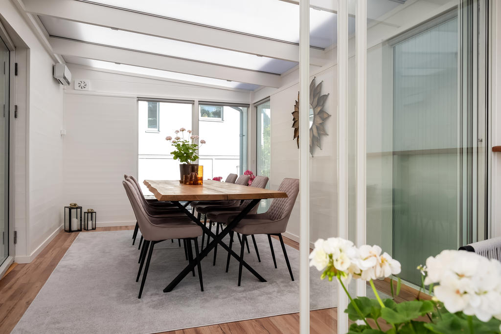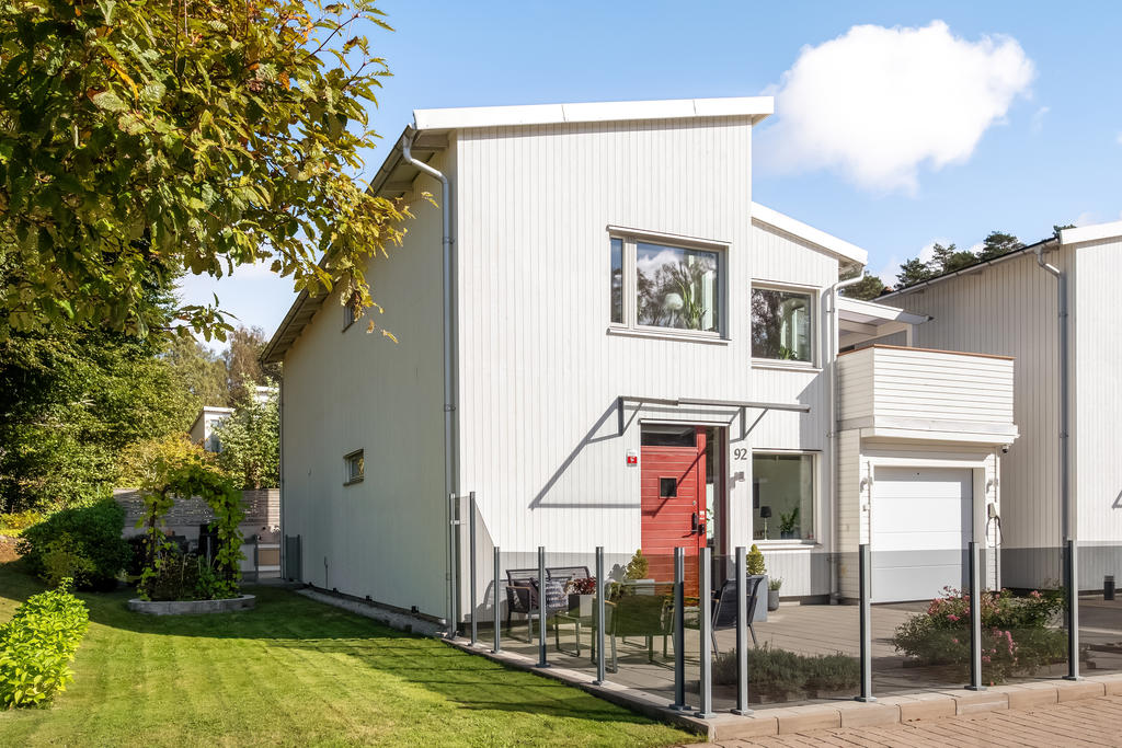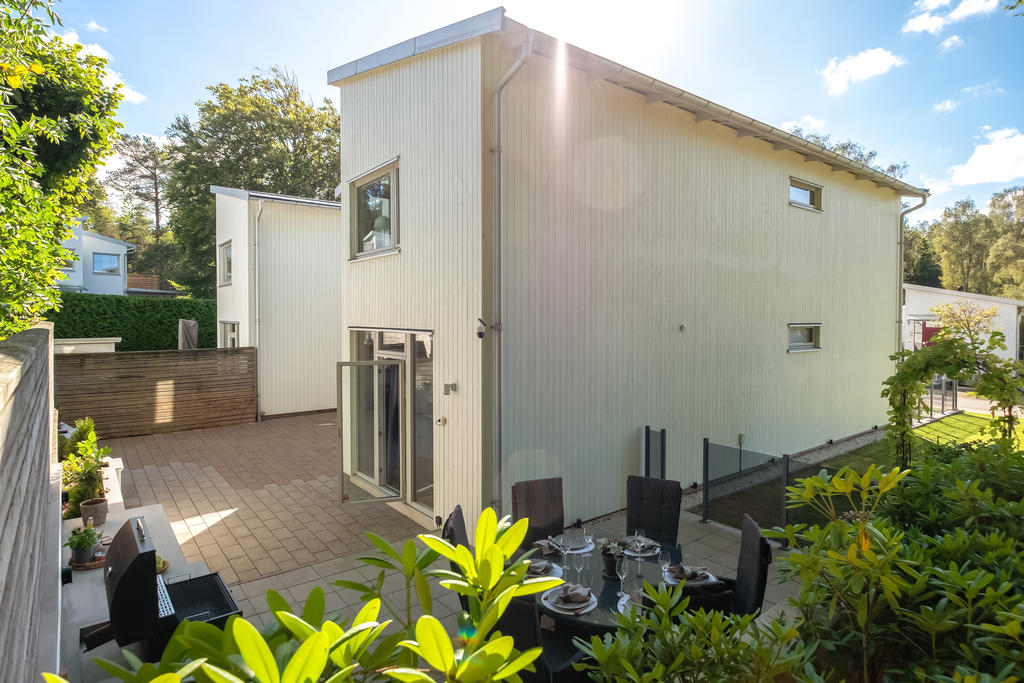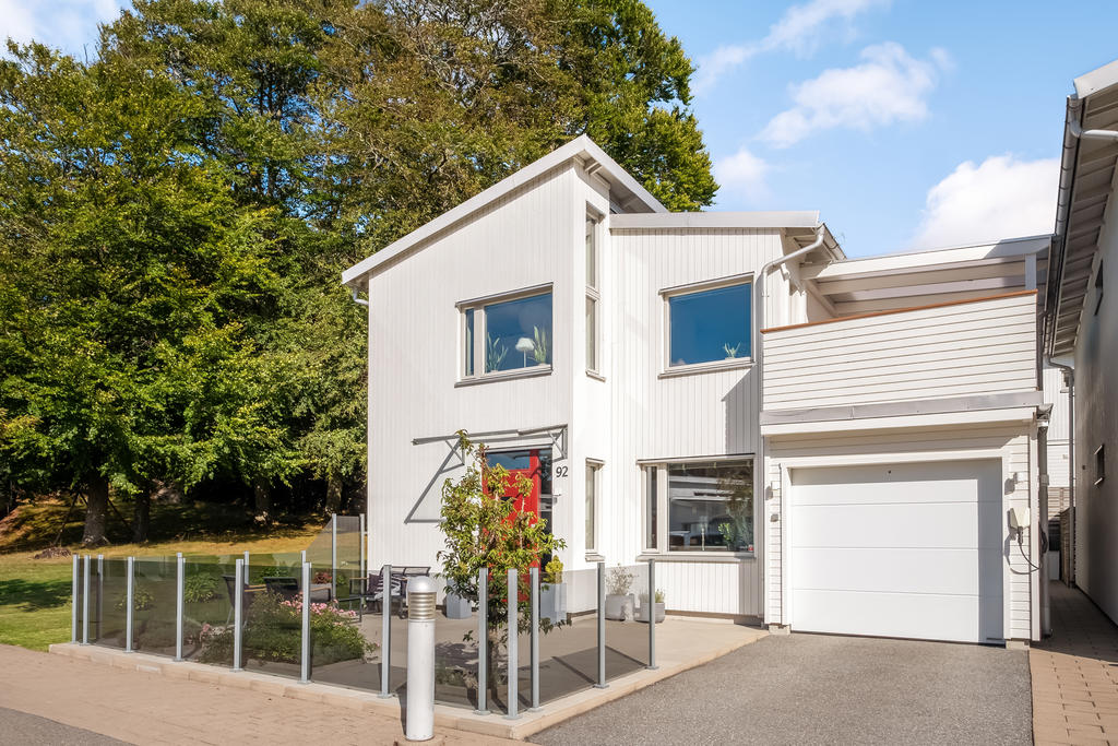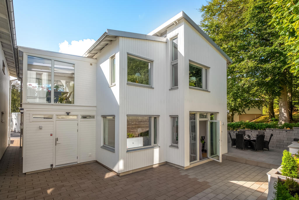 Välplanerad tvåplansvilla med grönskande läge och stora sociala ytor