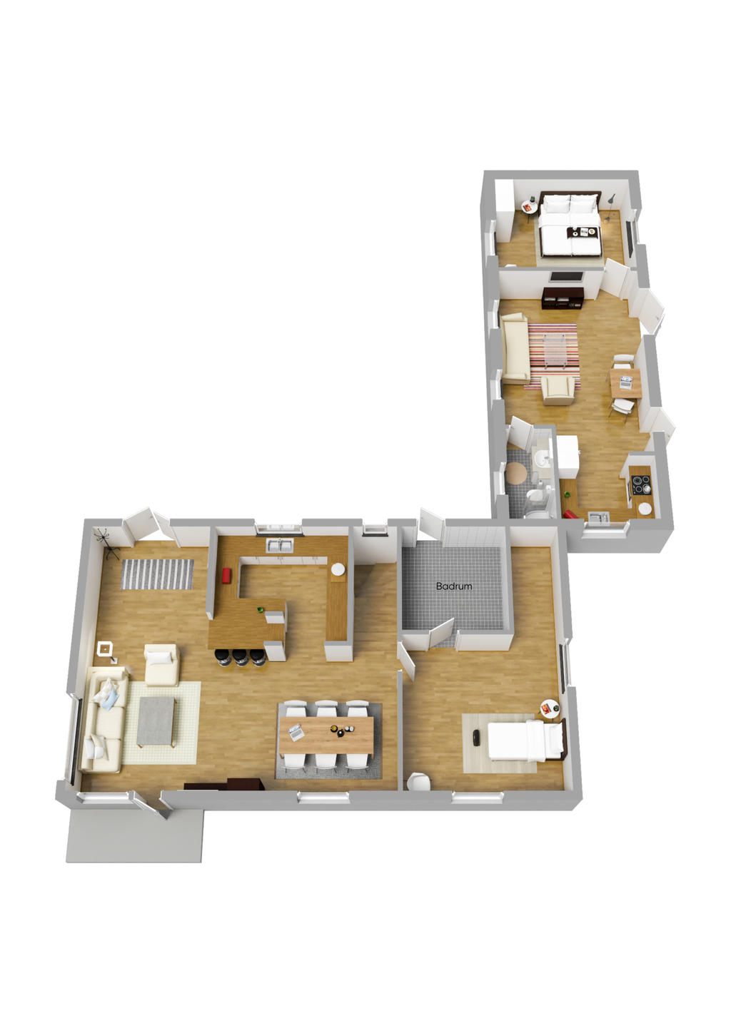 Rymlig suterrängvilla med pool, garage och separat lägenhet