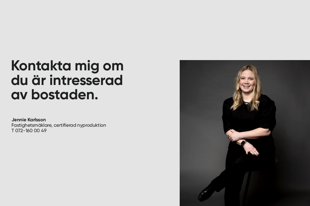 Med hjälp av vår boendekostnadskalkyl får du snabbt en uppfattning om vad den här bostaden skulle kosta dig per månad. Du kan enkelt justera siffrorna utifrån dina personliga förutsättningar. Kontakta mäklaren om du vill ha hjälp med beräkningen.