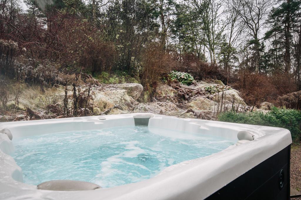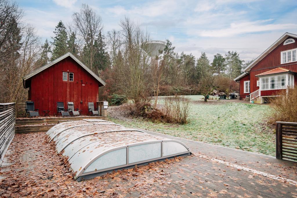 Den lummiga trädgården är som gjord för sommarliv. Här kan du svalka dig i en väl underhållen saltvattenspoolen med bland annat ett nytt sandfilter, eller koppla av i spabadet under stjärnhimlen. På punschverandan kan du ta morgonkaffet och njuta av soluppgången väl skyddat under tak. Tomten ramar in huset på ett vackert sätt, privat, men ändå centralt. I trädgården finns rabatter, fruktträd och flera mysiga uteplatser för samvaro varma sommarkvällar.