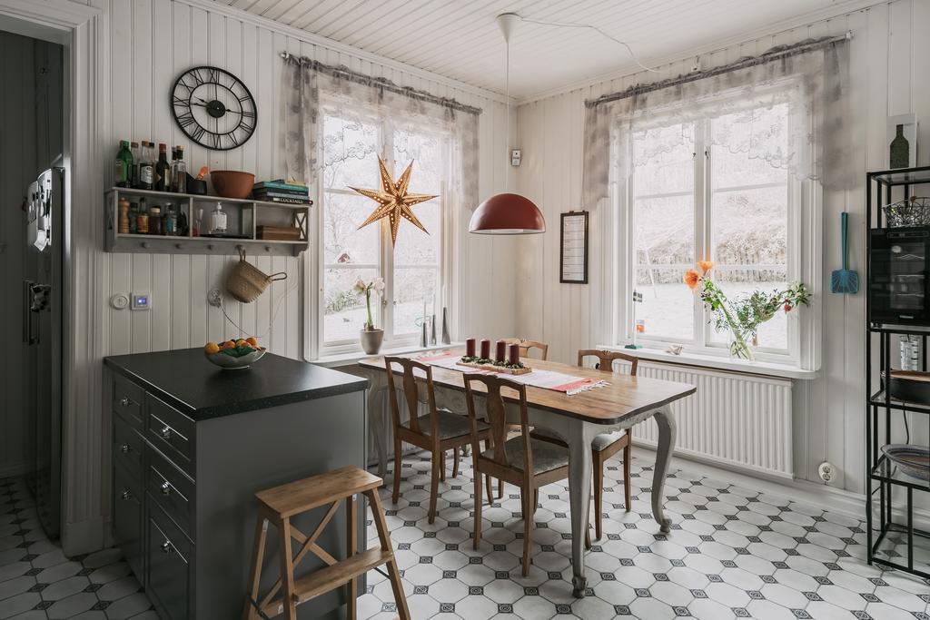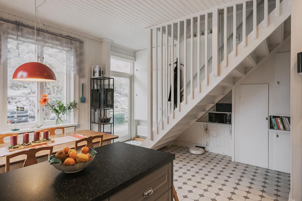 Kyrkskolans unika karaktär har varsamt bevarats genom åren, men bakom de gamla väggarna döljer sig modern teknik och smarta lösningar. Huset värms upp med bergvärme, fem fungerande eldstäder samt 60 solpaneler som installerade 2021, vilket ger både låg driftkostnad och hållbar energiförsörjning. Här finns fiber installerat, och för extra trygghet ett modernt vattenvakt-system. Under 2024-2025 har huset fått två nyrenoverat badrum samt nytt golv i kök, tidslöst och redo för många år framöver. I hallen finns också skön golvvärme, och i vardagsrummet sprakar elden i den vackra öppna eldstaden, som skapar en trivsam och rogivande atmosfär.