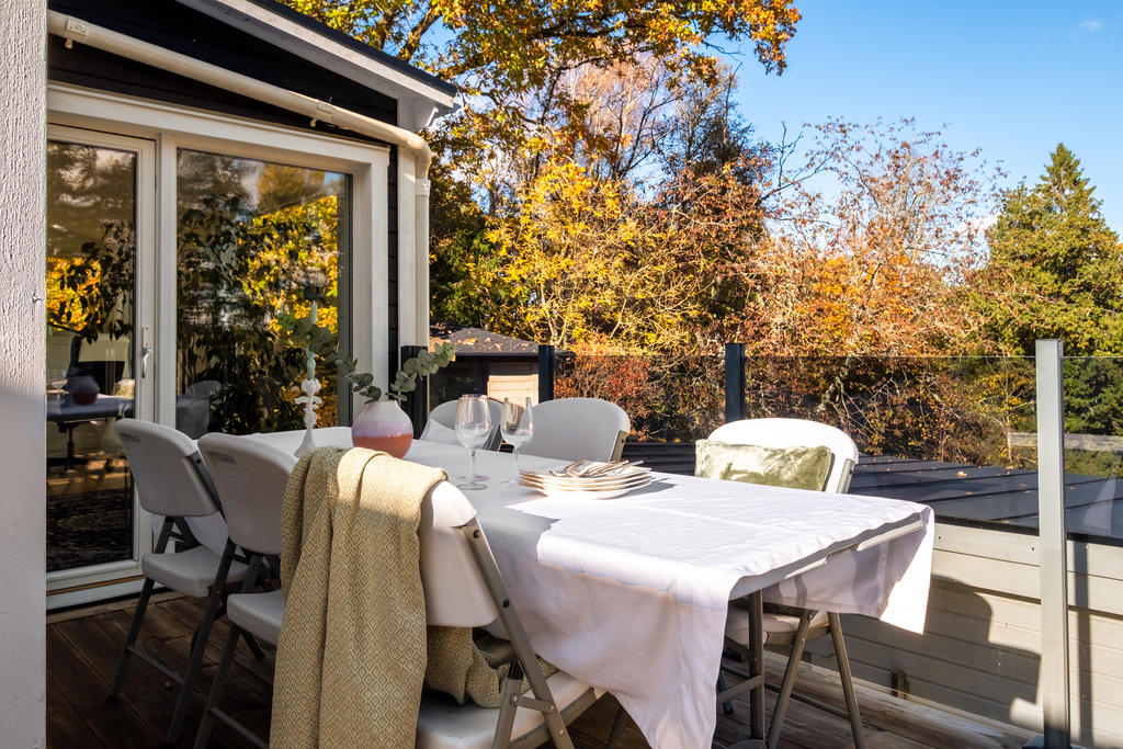 Som en extra bonus finns ett fullständigt inrett attefallshus på tomten. Perfekt som uthyrningslägenhet, generationsboende, eget kontor eller platsen för långväga gäster. Här får du privatliv, frihet och möjlighet till extra inkomst – utan att kompromissa med hemmets lugn.