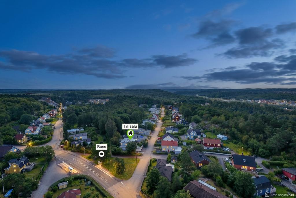 Här bor du i ett lugnt och familjevänligt område med närhet till både natur och stad. I närområdet väntar svamp- och bärmarker, flera badsjöar, lekplatser, skolor, förskolor och elljusspår – och bara några minuter bort ligger Gunnebo kulturreservat med sina promenadstråk och restaurang.