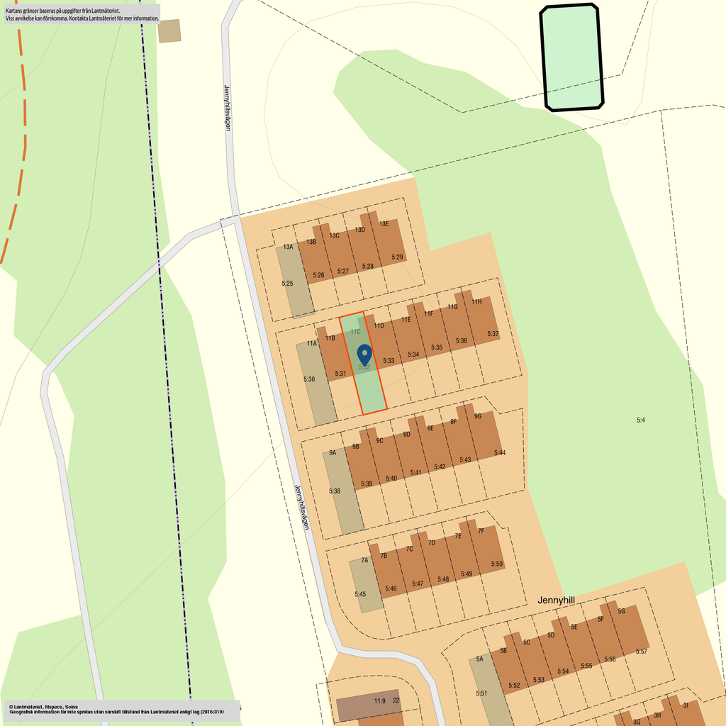 Detta är ett hem med en lång historia. Nuvarande ägare växte själv upp här under 60- och 70-talet och beskriver uppväxten på Jennyhill som något alldeles speciellt – mycket tack vare naturen och gemenskapen i området. Precis utanför dörren breder fantastiska skogs- och rekreationsområden ut sig med vandringsleder, lekvänlig natur och små dammar där barn kan leka med båtar eller bada under varma dagar. I bokskogen i närheten finns fortfarande säljarens initialer ristade i ett träd från 1966 – ett litet minne från barndomens lekar.