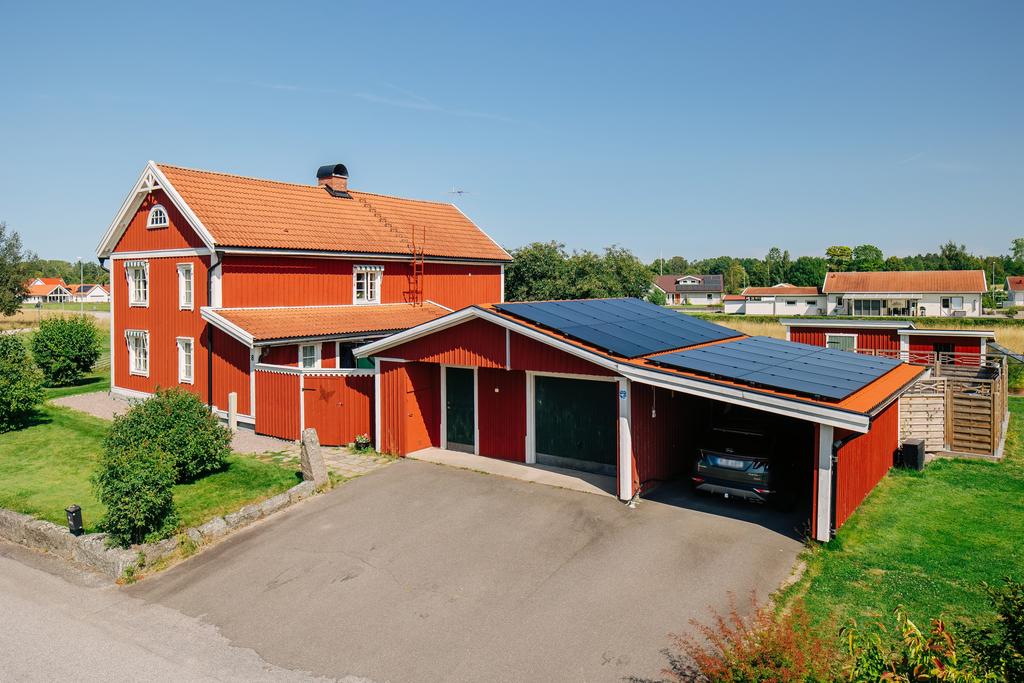 På ekonomibyggnaden finns moderna solpaneler monterade som, tillsammans med ett effektivt batterilagringssystem på 10 kW, skapar ett klimatsmart och energieffektivt boende. Här finns också carport, verkstad och garage, optimalt för dig med bilintresse eller som önskar plats för hobbyverksamhet. Till fastigheten hör också ett praktiskt förråd samt vedskjul.