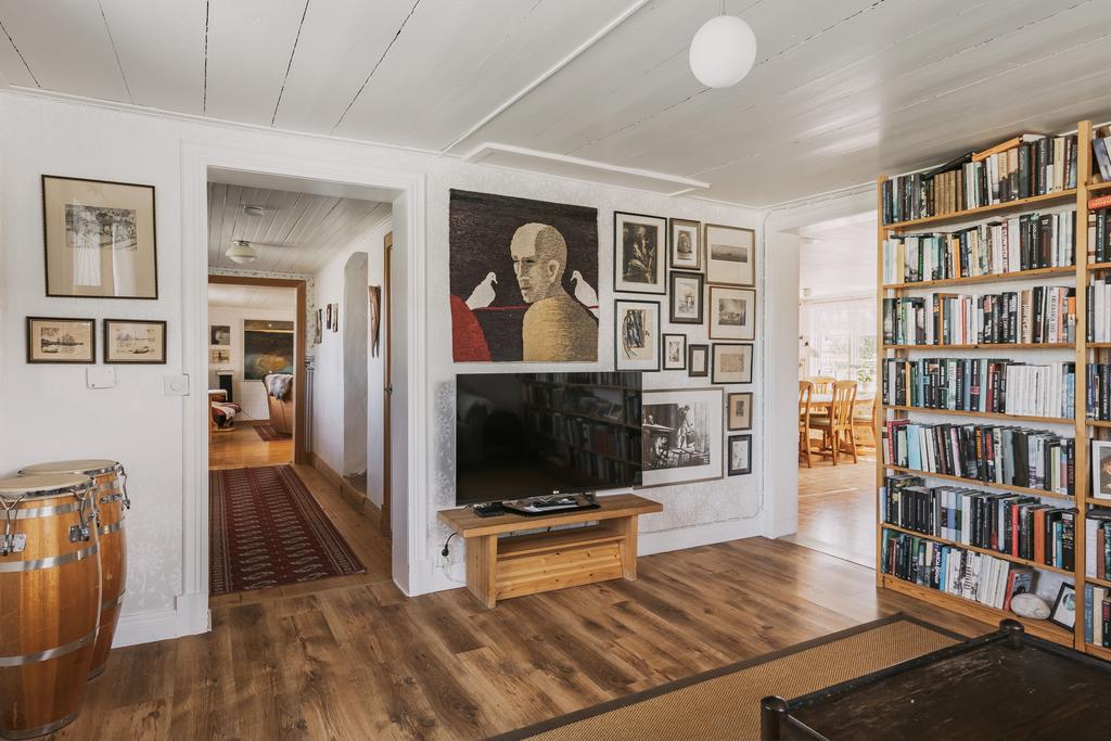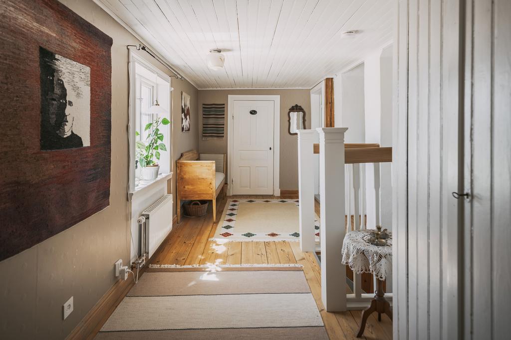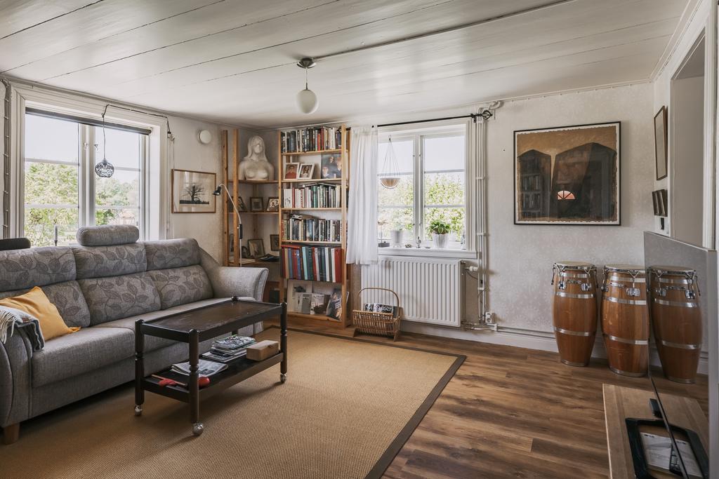 Bostadshuset om ca 150 kvm bjuder på en varm, inbjudande atmosfär där originaldetaljer och lite sneda vinklar sätter prägeln. Ett karaktäristiskt stenvalv som är placerat mitt i huset vittnar om byggnadens historia.