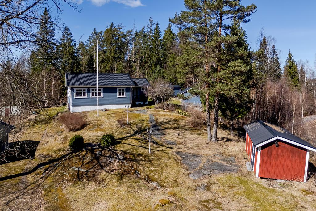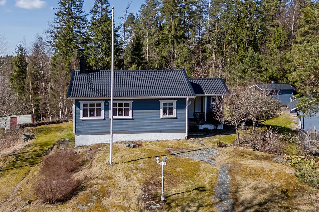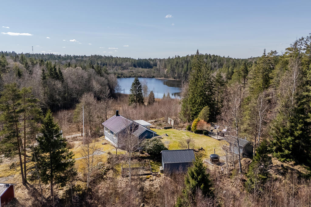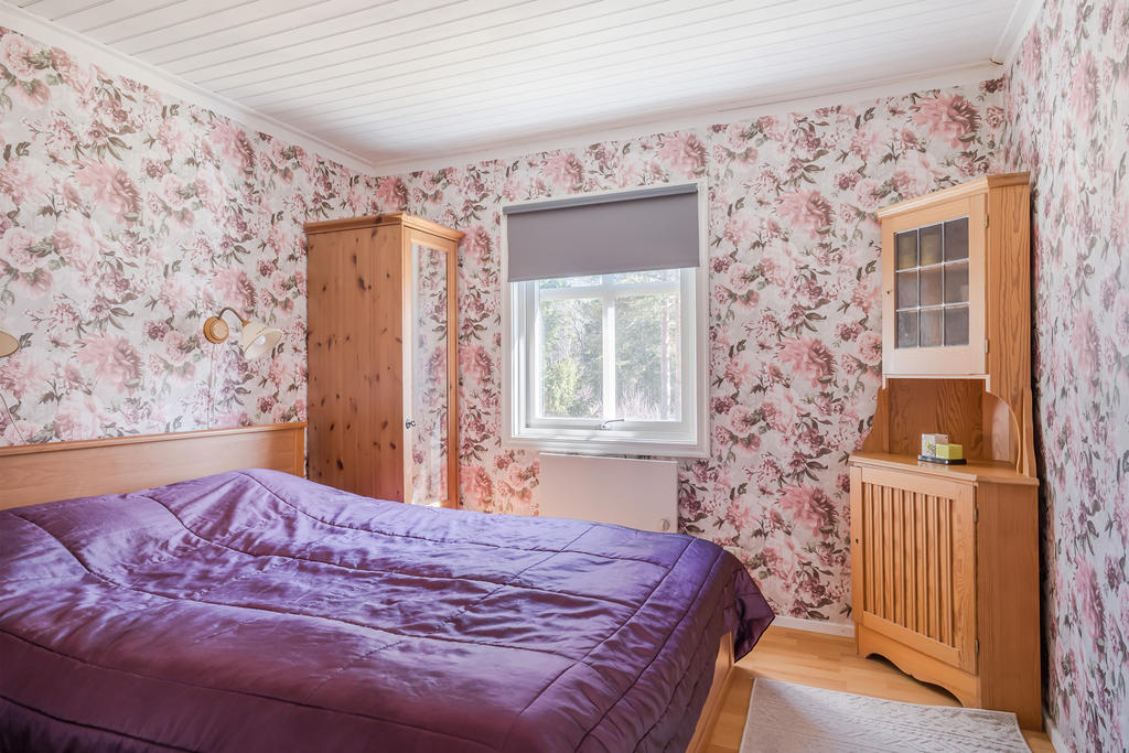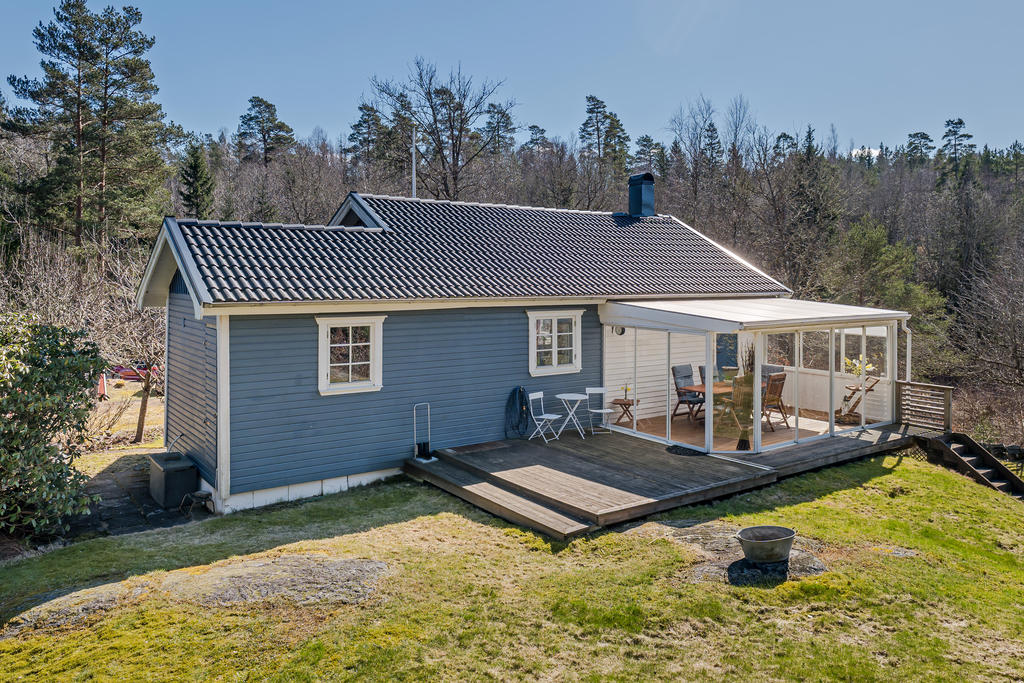 Välvårdad sommarstuga med naturen och bad runt hörnet.