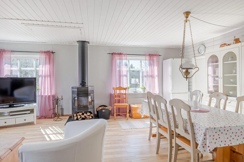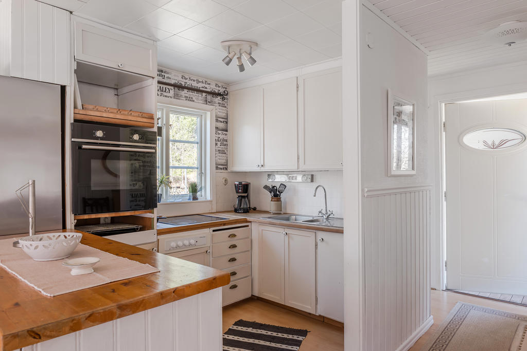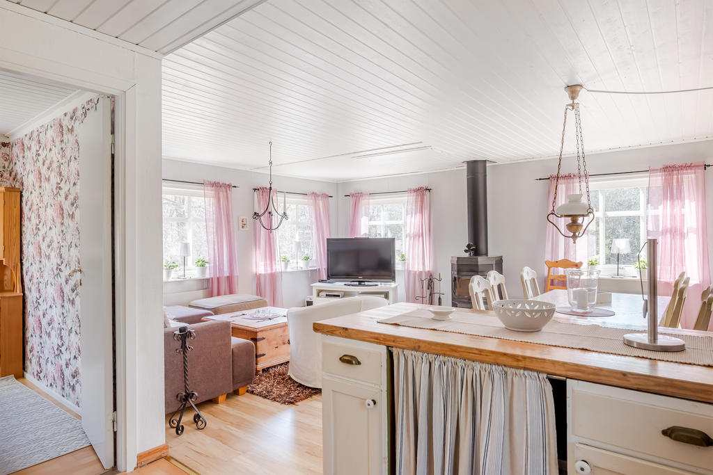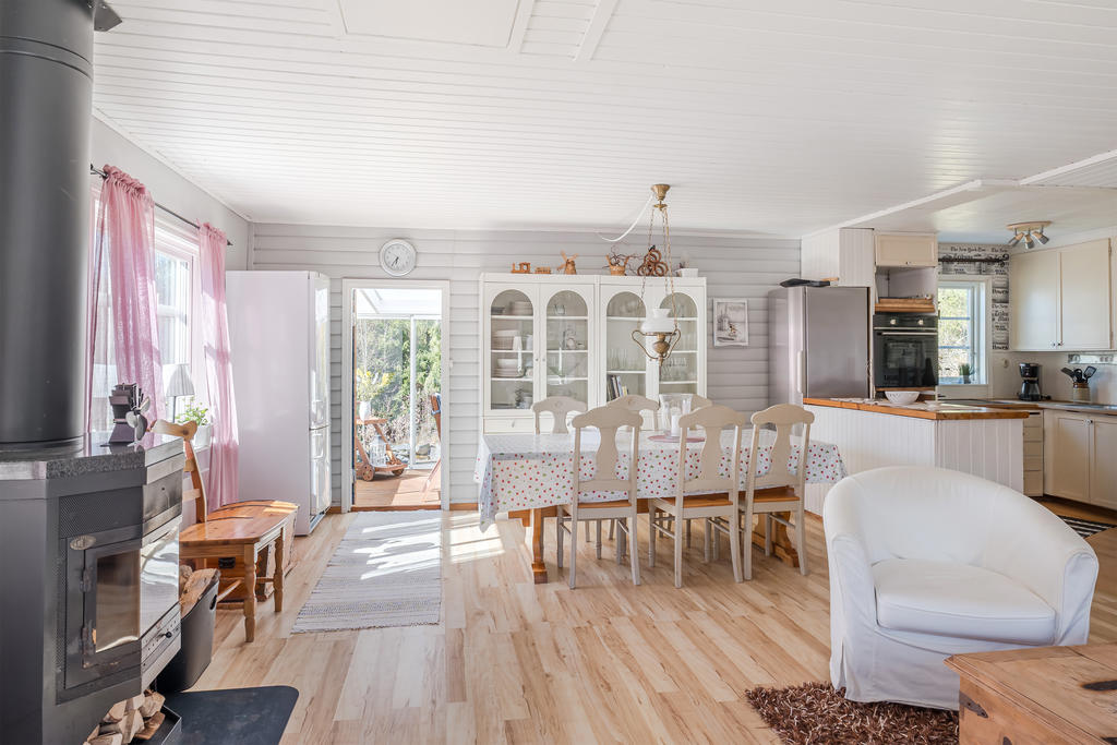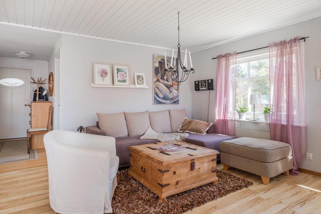 Välvårdad sommarstuga med naturen och bad runt hörnet.