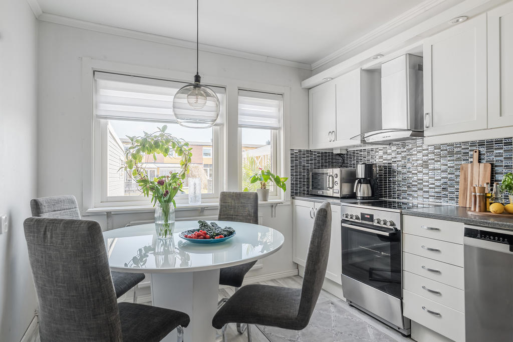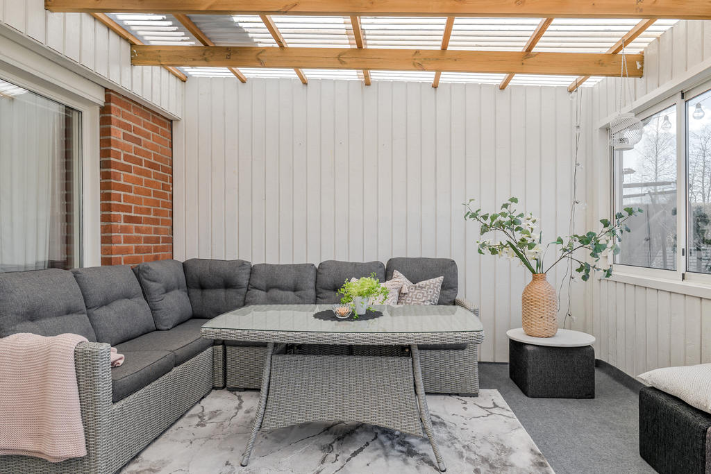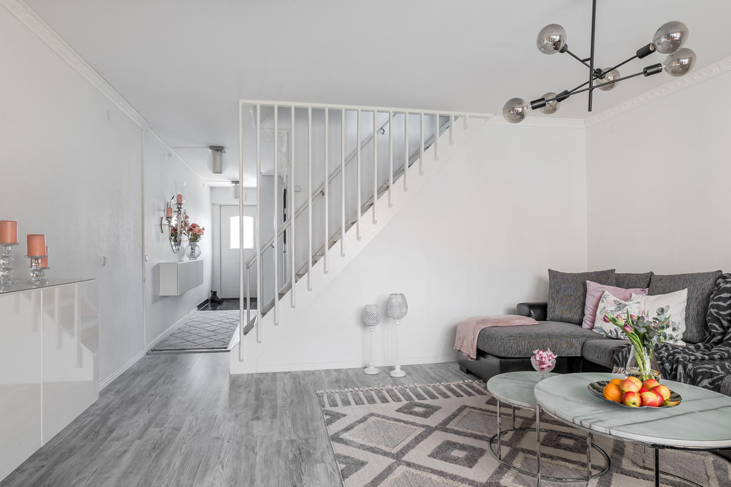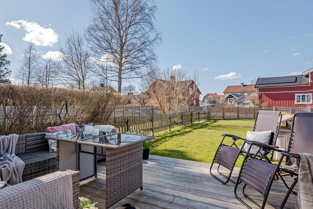 Fint radhus på Sandhem med fina uteplatser och garage i länga.
