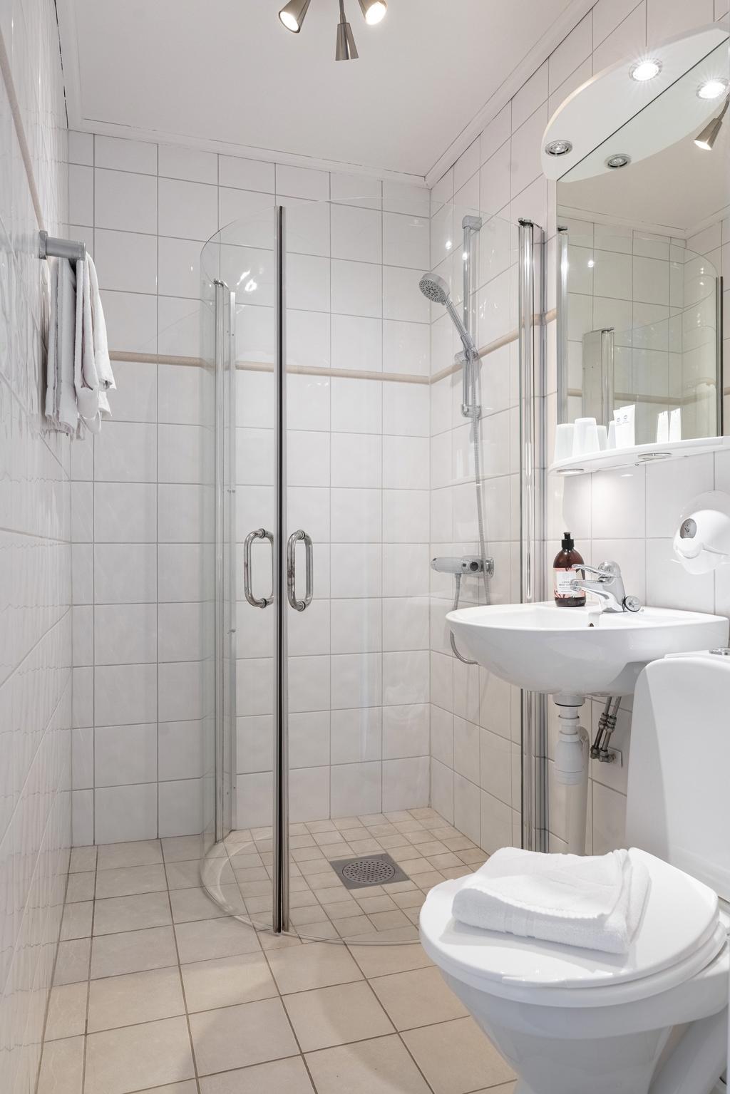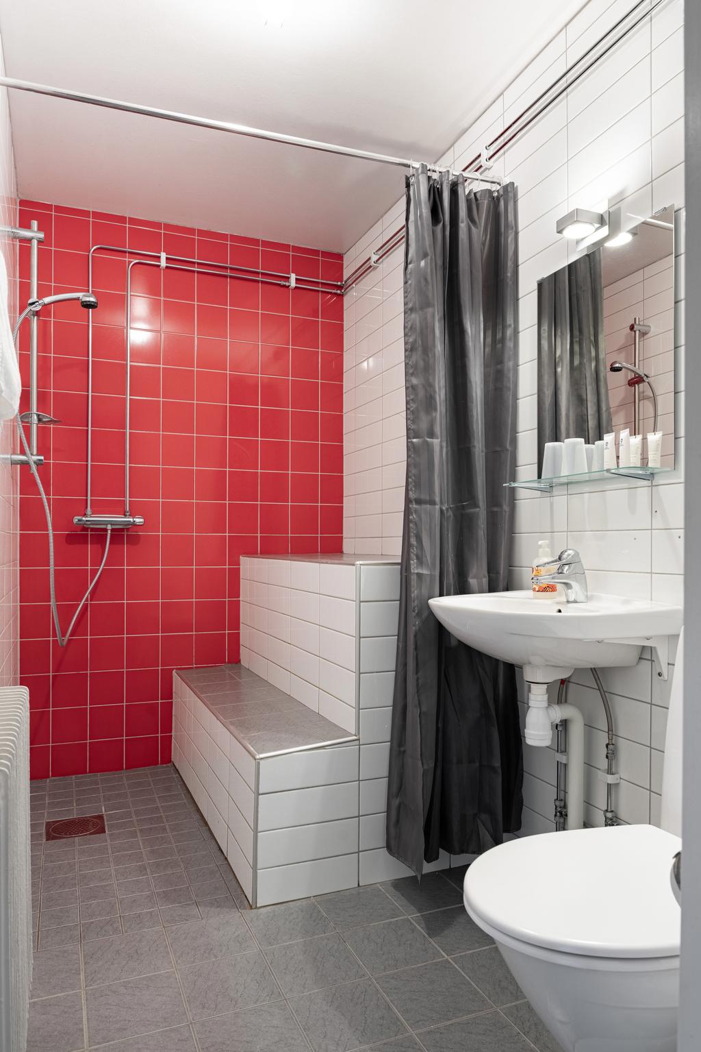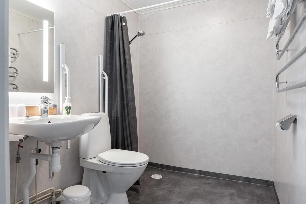 - Handikappanpassat rum: Beläget på nedre botten med tröskelfri tillgång, rymlig toalett, stödhandtag och duschstol – anpassat för ökad tillgänglighet.