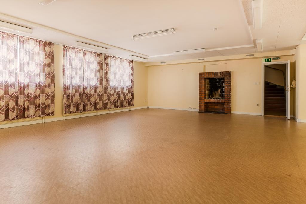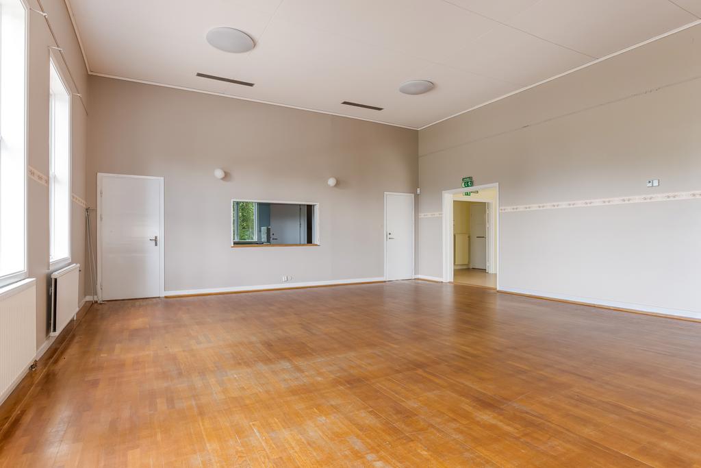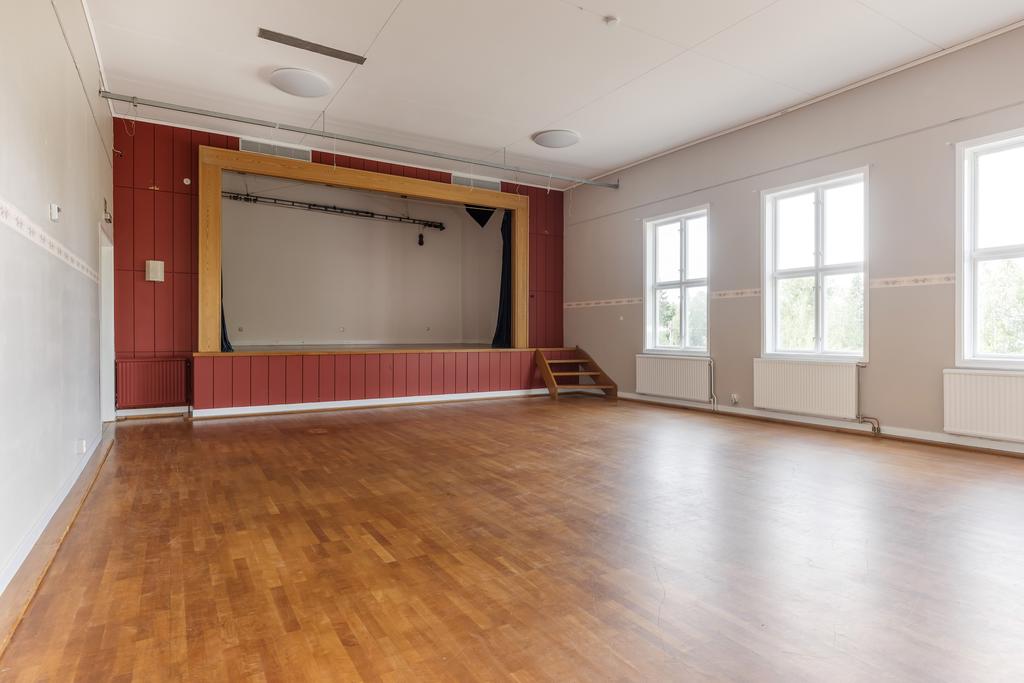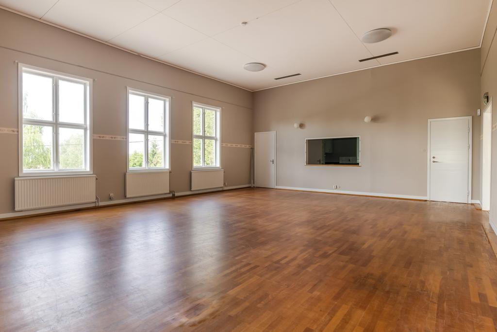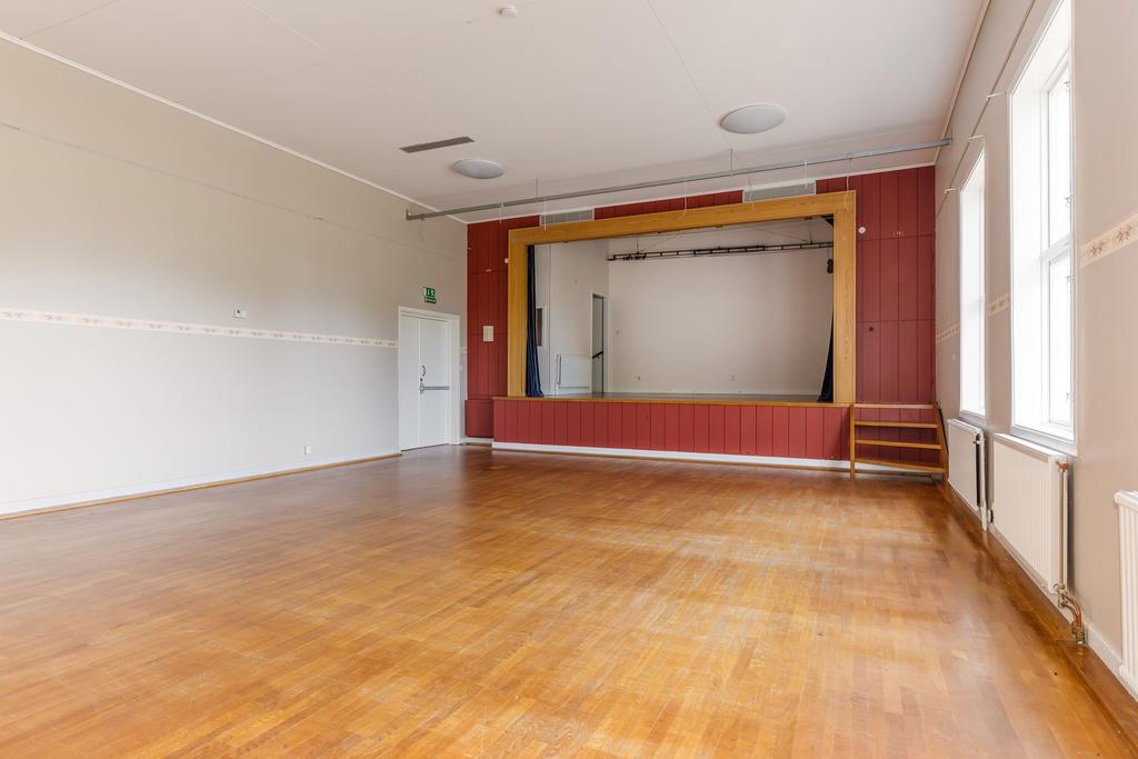 Fastigheten har en stor samlingssal och flexibla utrymmen som kan anpassas för olika ändamål – från kulturella evenemang och konferenser till privata fester och bröllop.