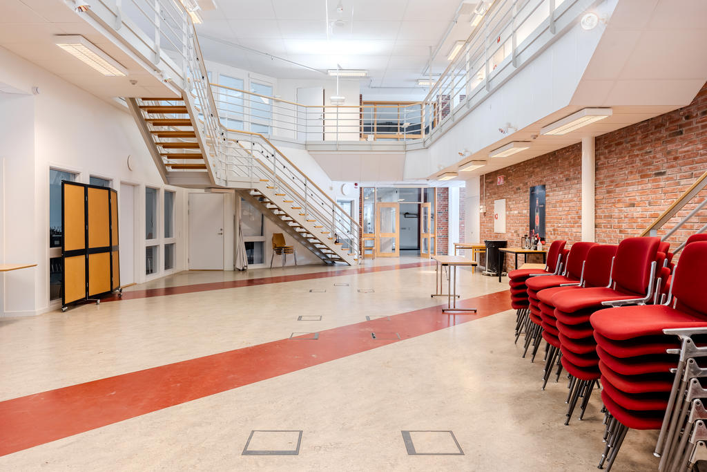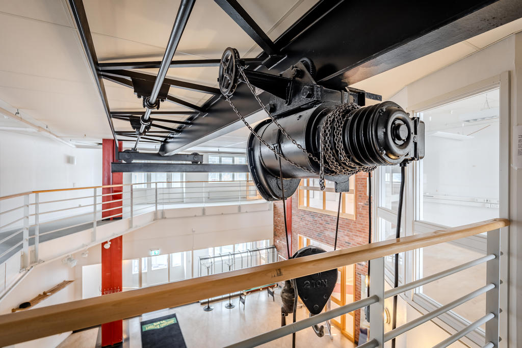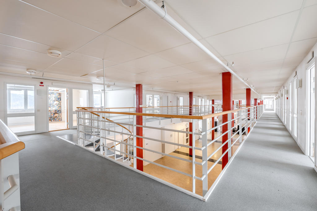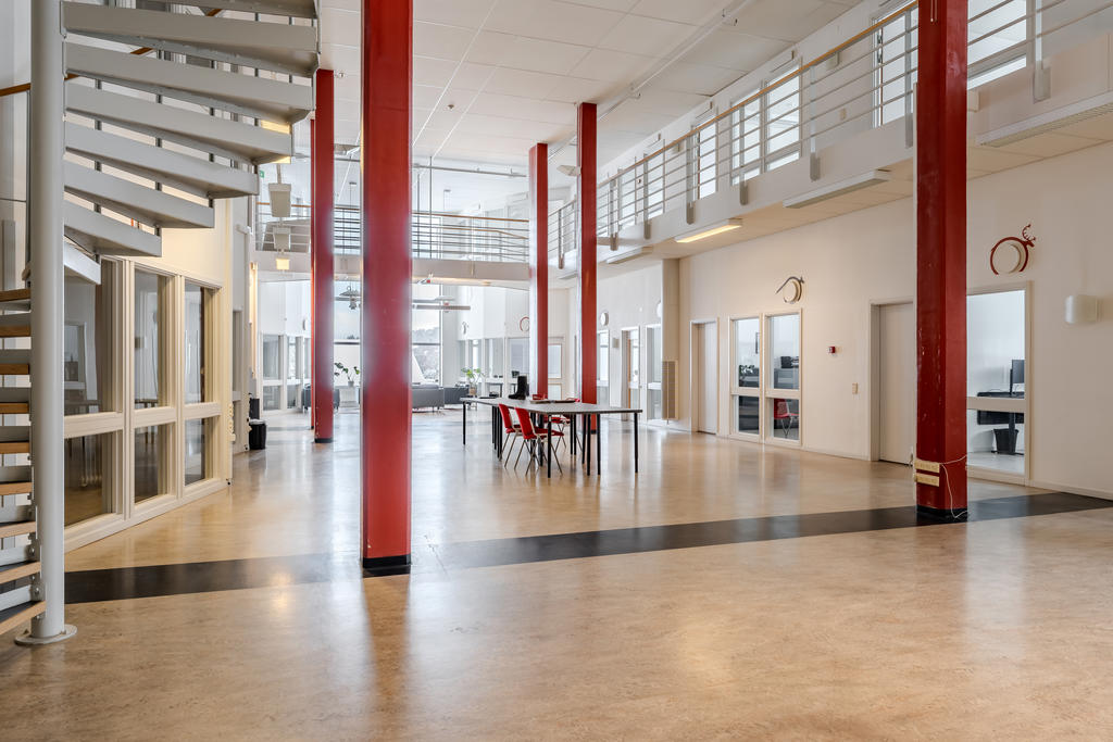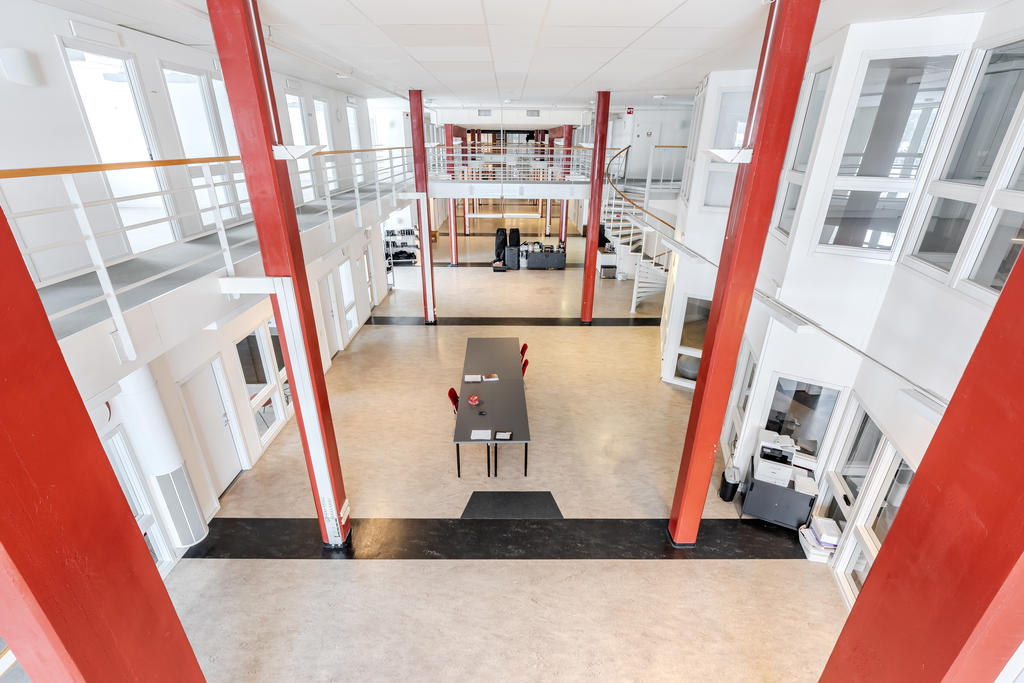Efter att den tidigare produktionen av träfiberskivor avvecklades genomgick stora delar av byggnaden en omfattande ombyggnation. När callcenterverksamheten etablerade sig skapades ljusa och öppna kontorsytor med god rymd och ytor som kompletterar industrins mer robusta delar. Kombinationen gör fastigheten väl anpassad för en bred palett av verksamheter.