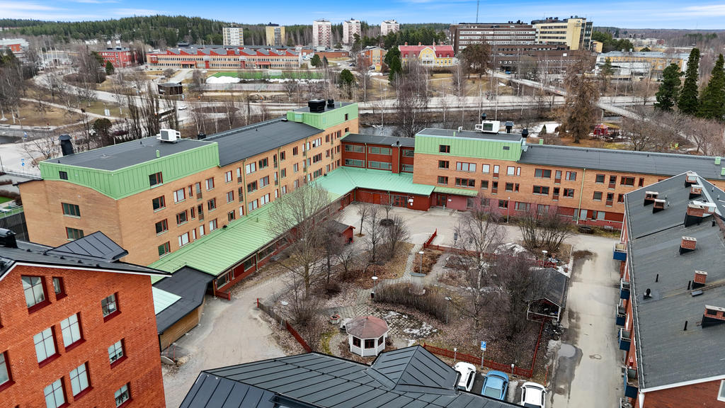 Fastigheten är bebyggd med ett tidigare vård- och omsorgsboende från 1978, bestående av två byggnadskroppar i vinkel. Verksamheten avvecklades 2025. Byggnadens struktur, volym och planlösning ger ett tydligt omställningscase med potential för flera alternativa användningar.