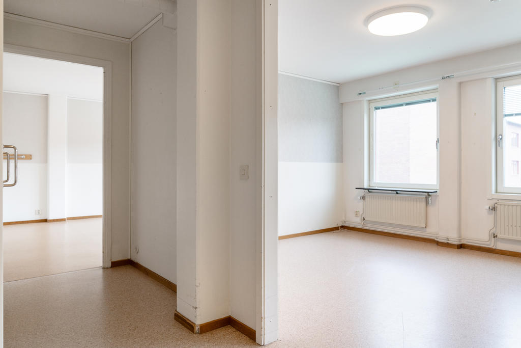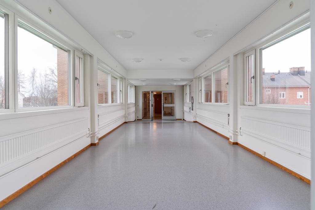 Trapphus med hiss i båda ändar av respektive byggnad skapar goda förutsättningar för uppdelning, effektivisering och ny planlösning vid ombyggnation.