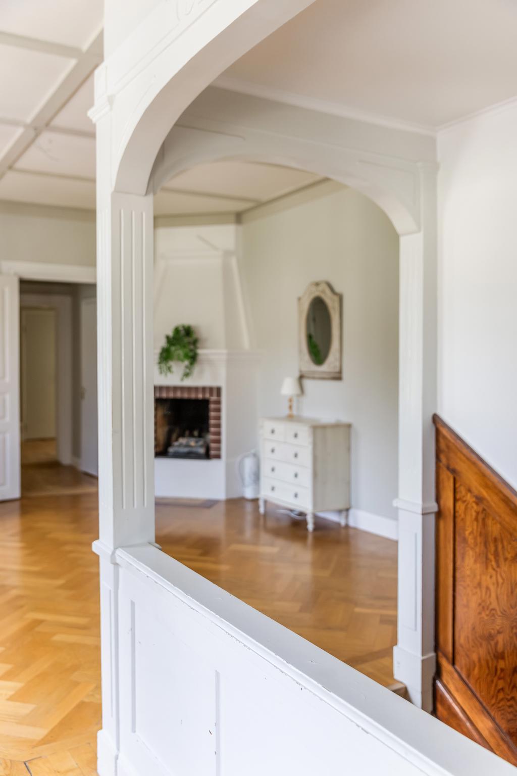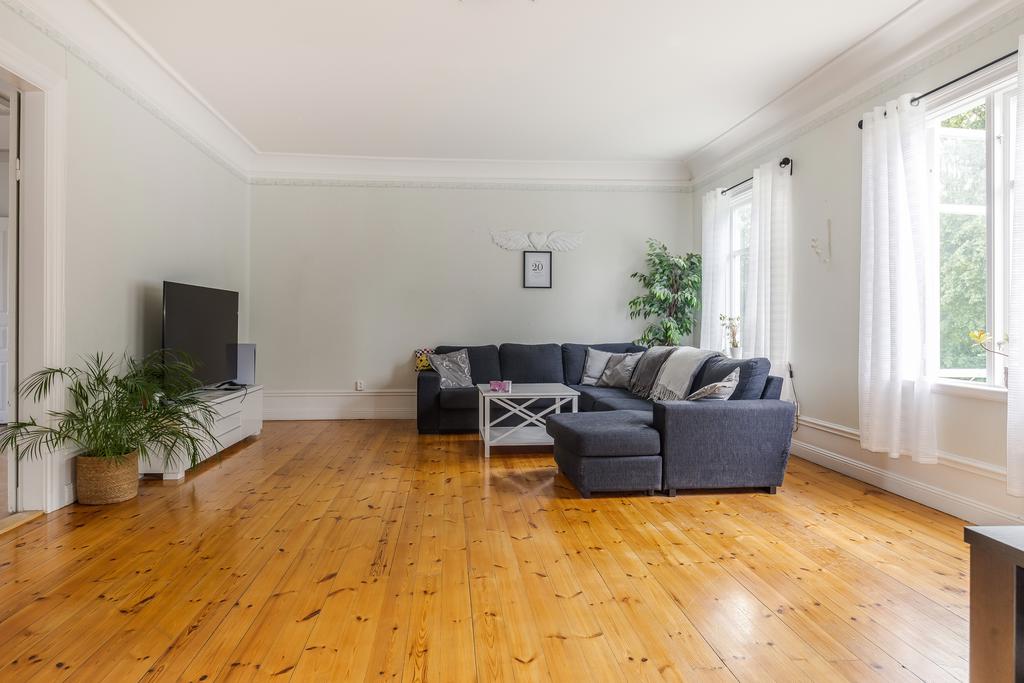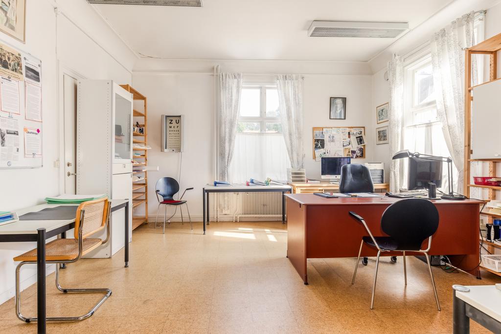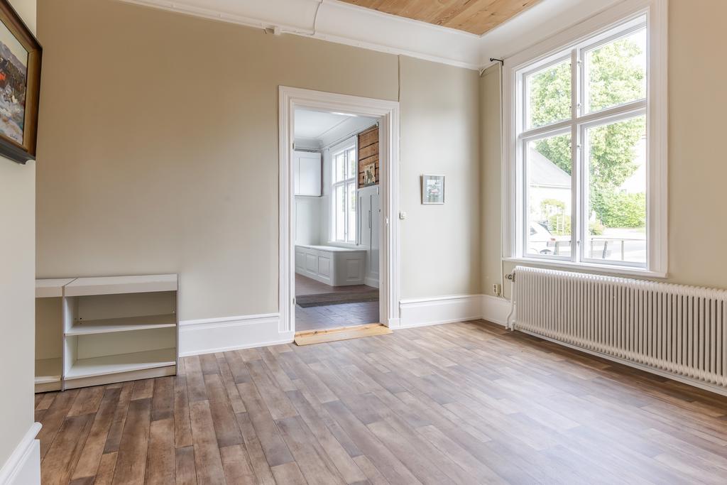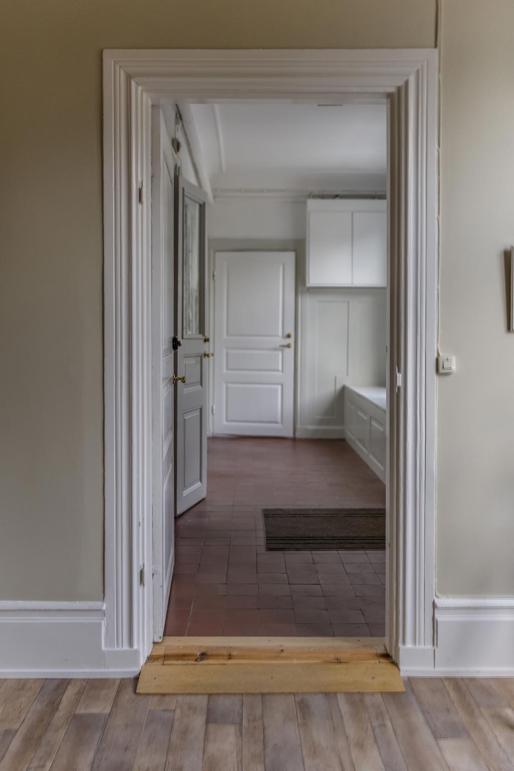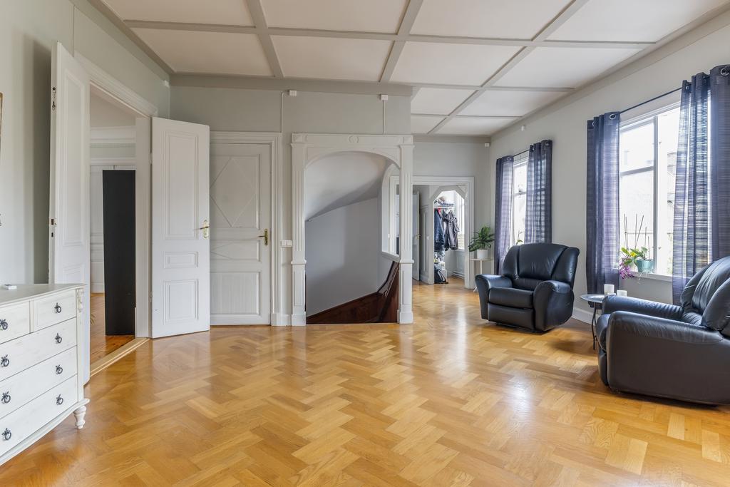 Idag består byggnaden av en lägenhet på våning 2. Bestående av 6 rok. Där takhöjden ger en fantastisk känsla av rymd! Kakelugnar och detaljer i trä finner vi även på denna våning.