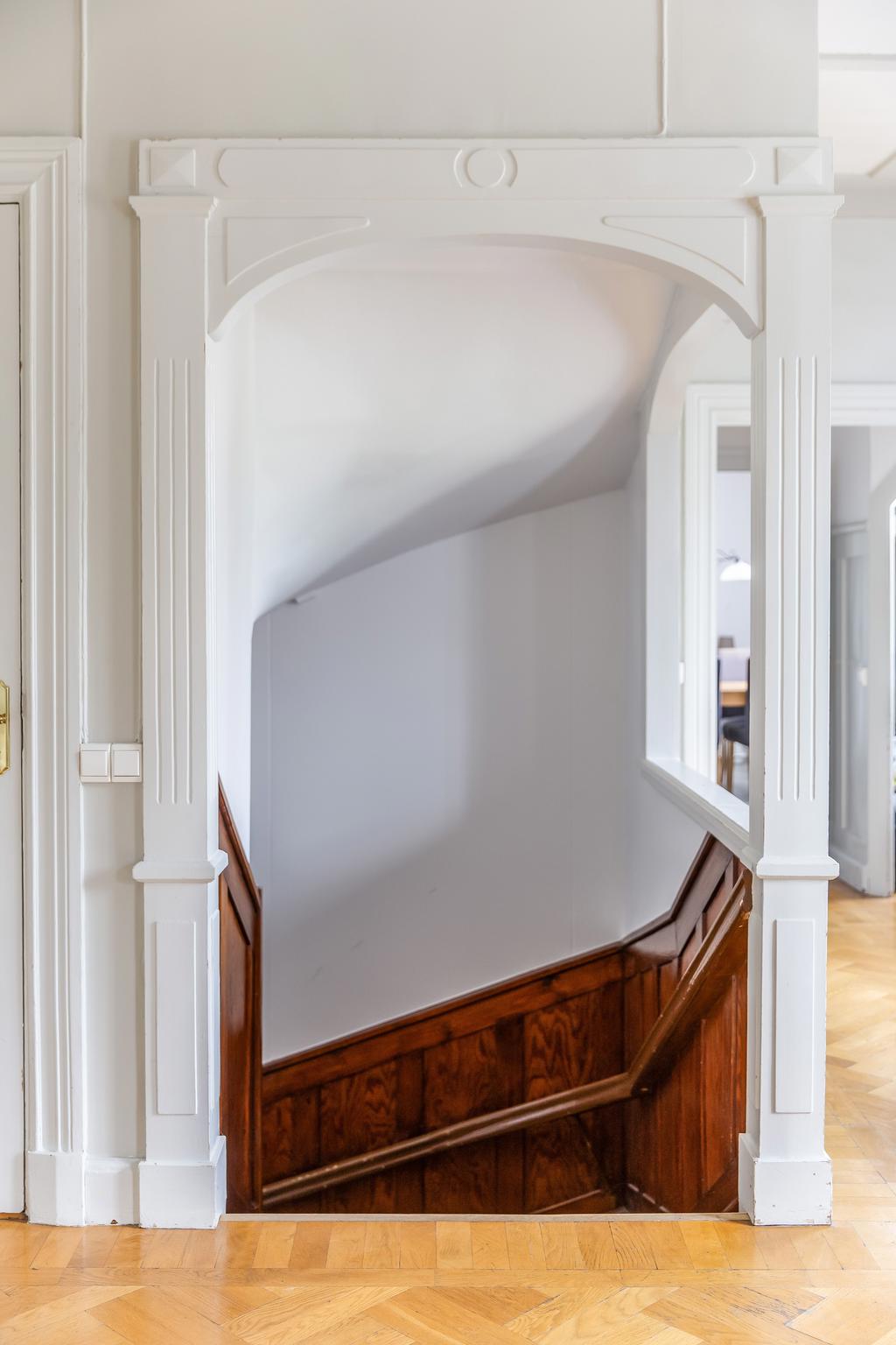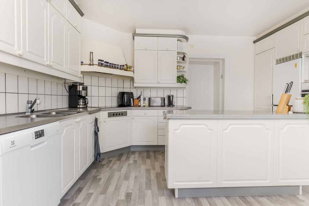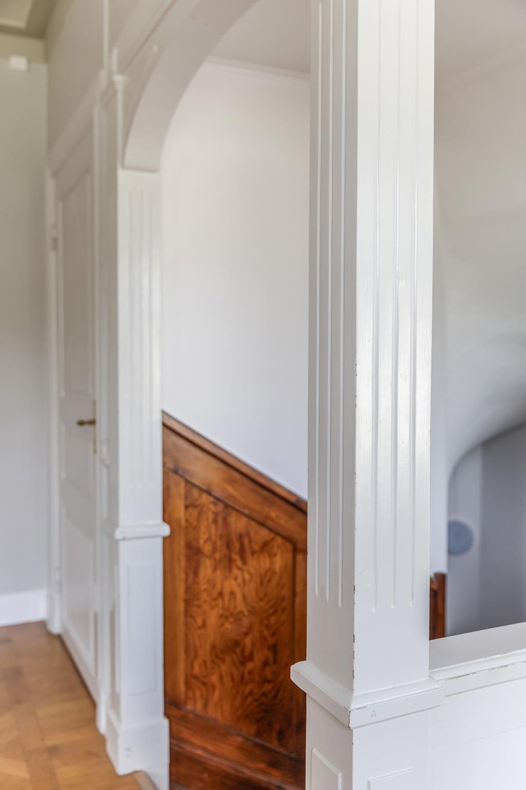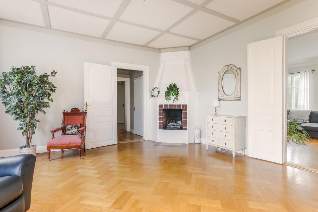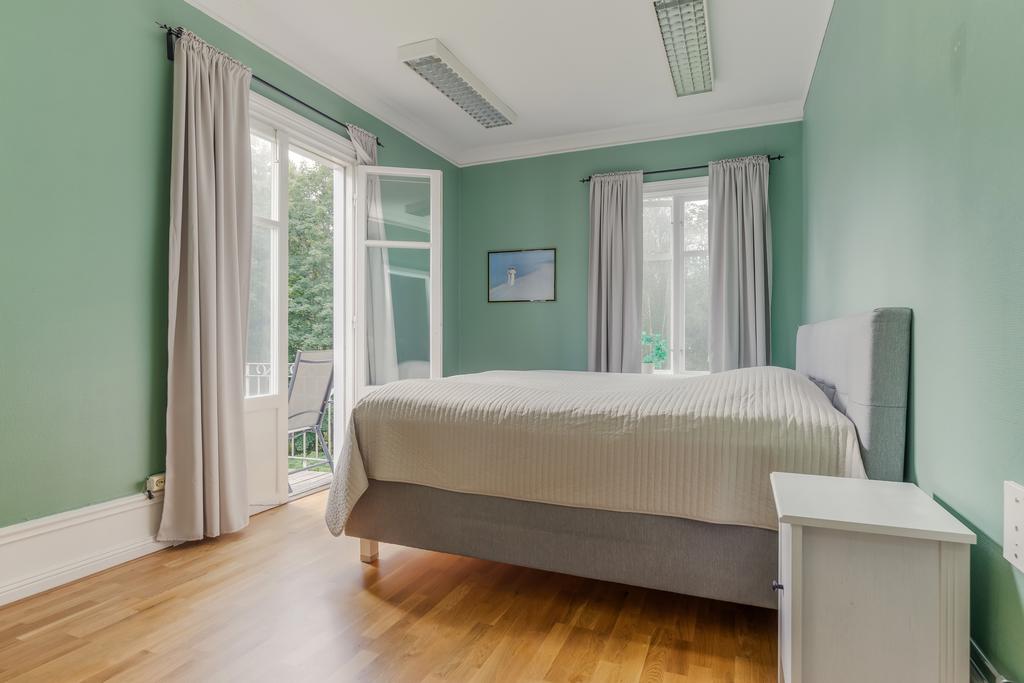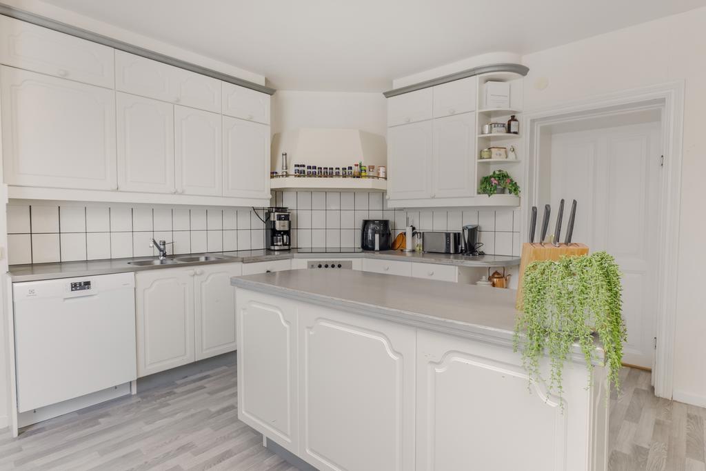 Idag består byggnaden av en lägenhet på våning 2. Bestående av 6 rok. Där takhöjden ger en fantastisk känsla av rymd! Kakelugnar och detaljer i trä finner vi även på denna våning.