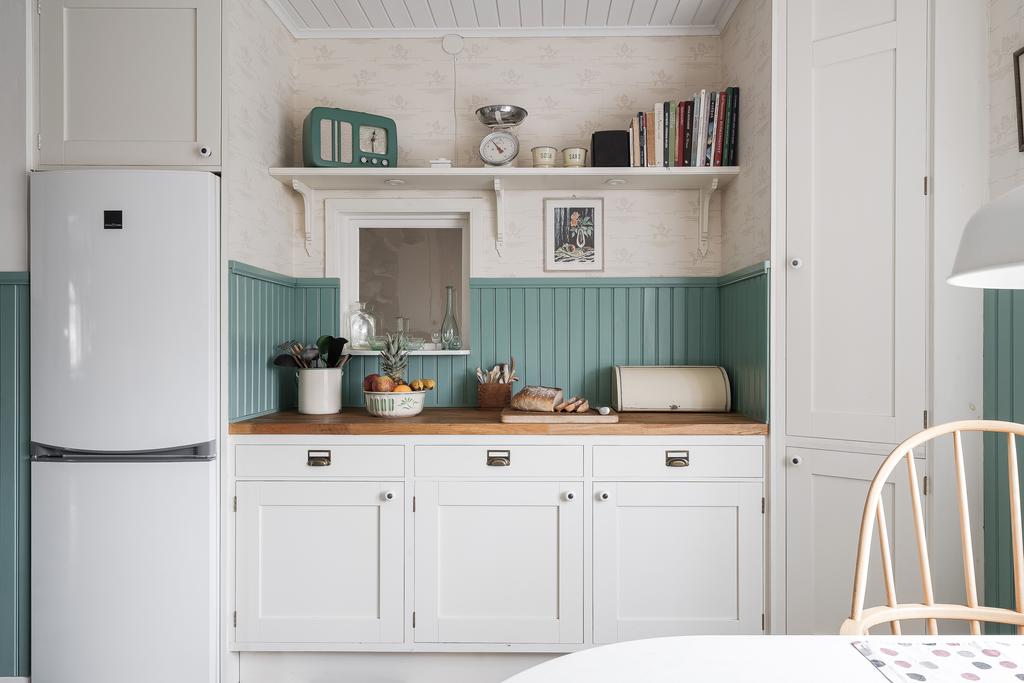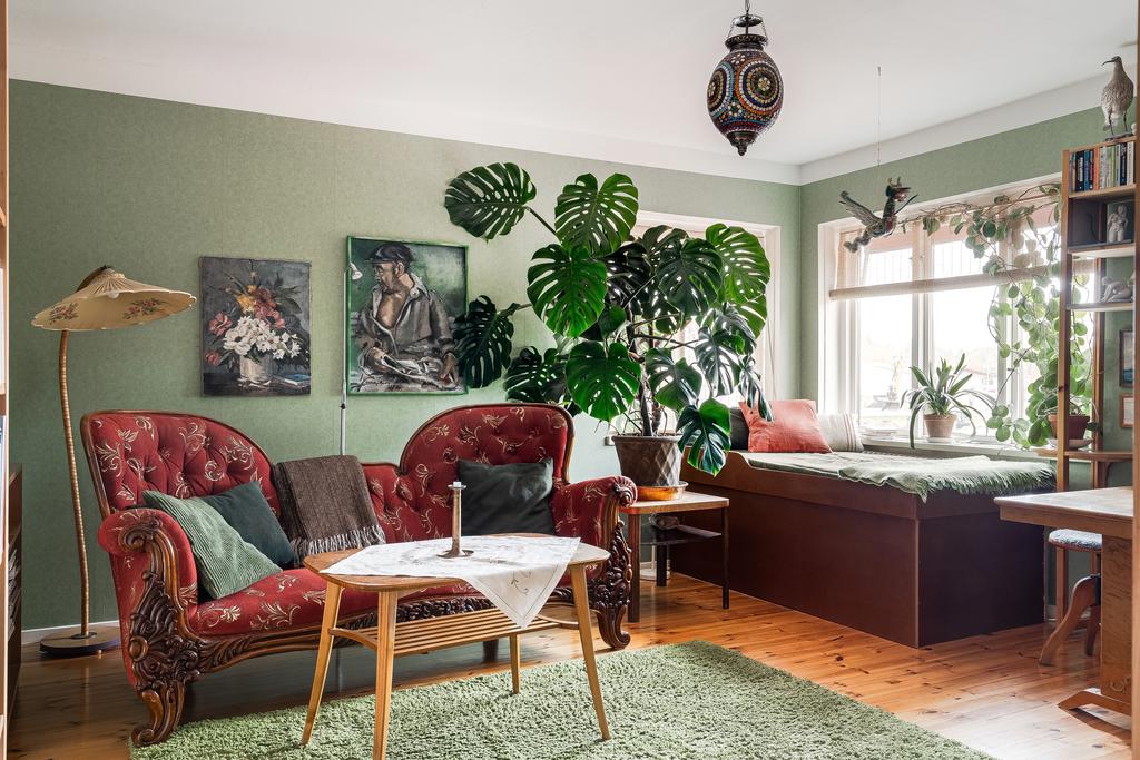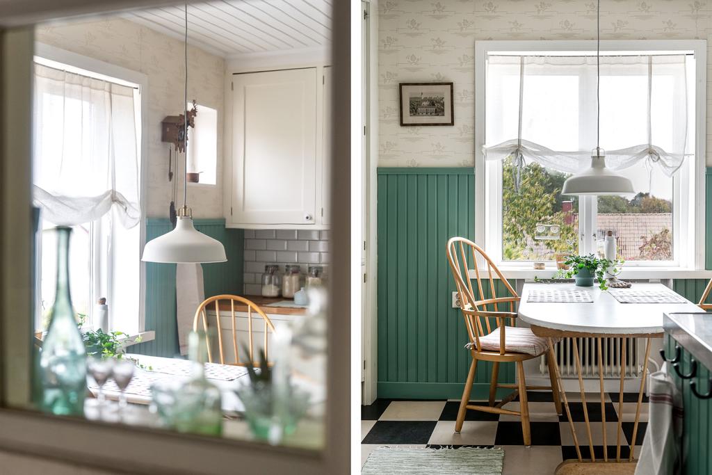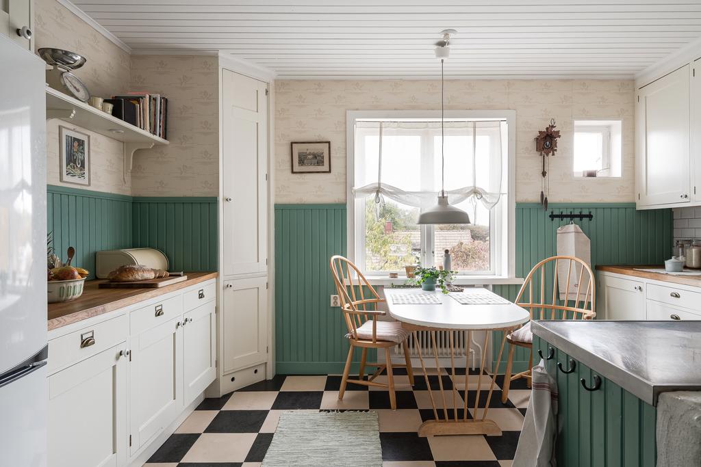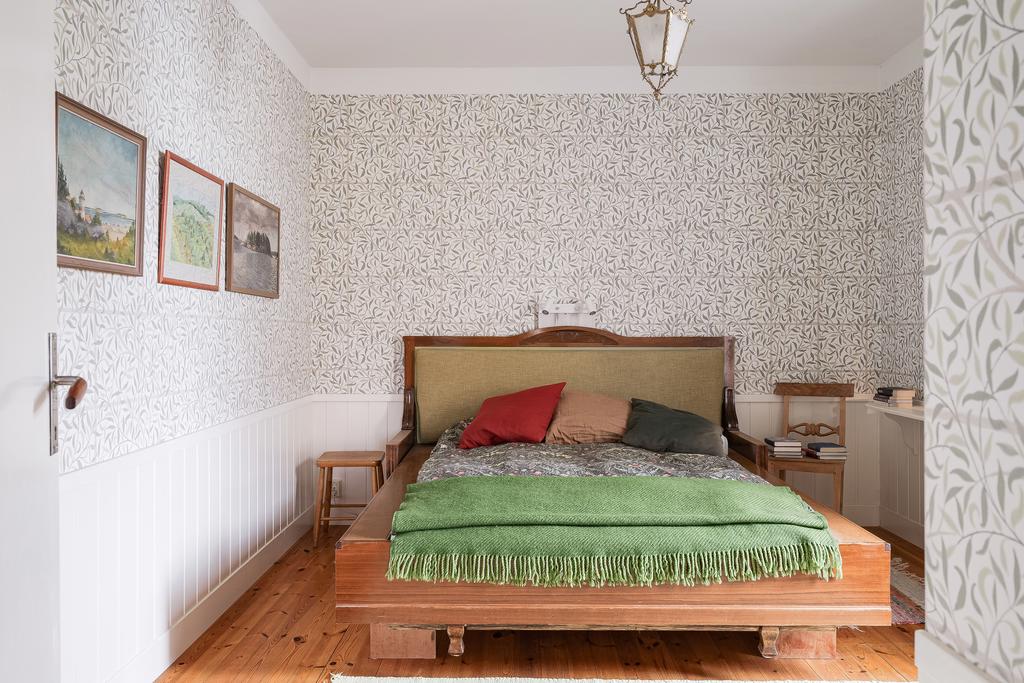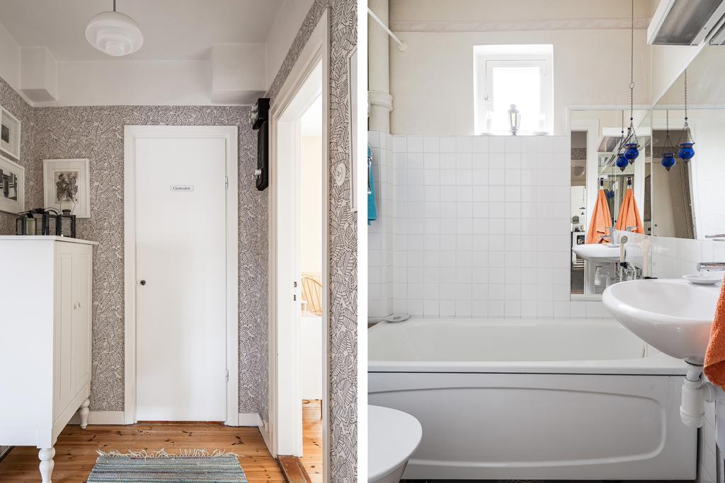 Det övre planet fungerar som en bostad i sin helhet med trivsamma rumsligheter som kan rymma fler eller färre sovrum. I dagsläget fördelas funktionen med två ljusa och rymliga sovrum i varsitt "hörn" där ett av rummen har egen balkong. Här finns även två badrum varav ett med dusch och det andra med badkar och det finns en inre hall med kapprum intill "trapphuset". Köket är tilltalande och gemytligt i en härligt lantköksstil med vackra beslag och delvis en återskapad känsla av 40 tal. Det finns gott om skåpsutrymmen och fina detaljer med vedspis och skafferi samt en mysig matplats vid fönstret med utsikt över trädgården och villaområdet. Utöver detta ges plats för två stora allrum såsom matsal och vardagsrum intill varandra där det även finns kakelugn och balkong. Till bostaden hör också ett inrett rum på vinden, samt en oinredd del.