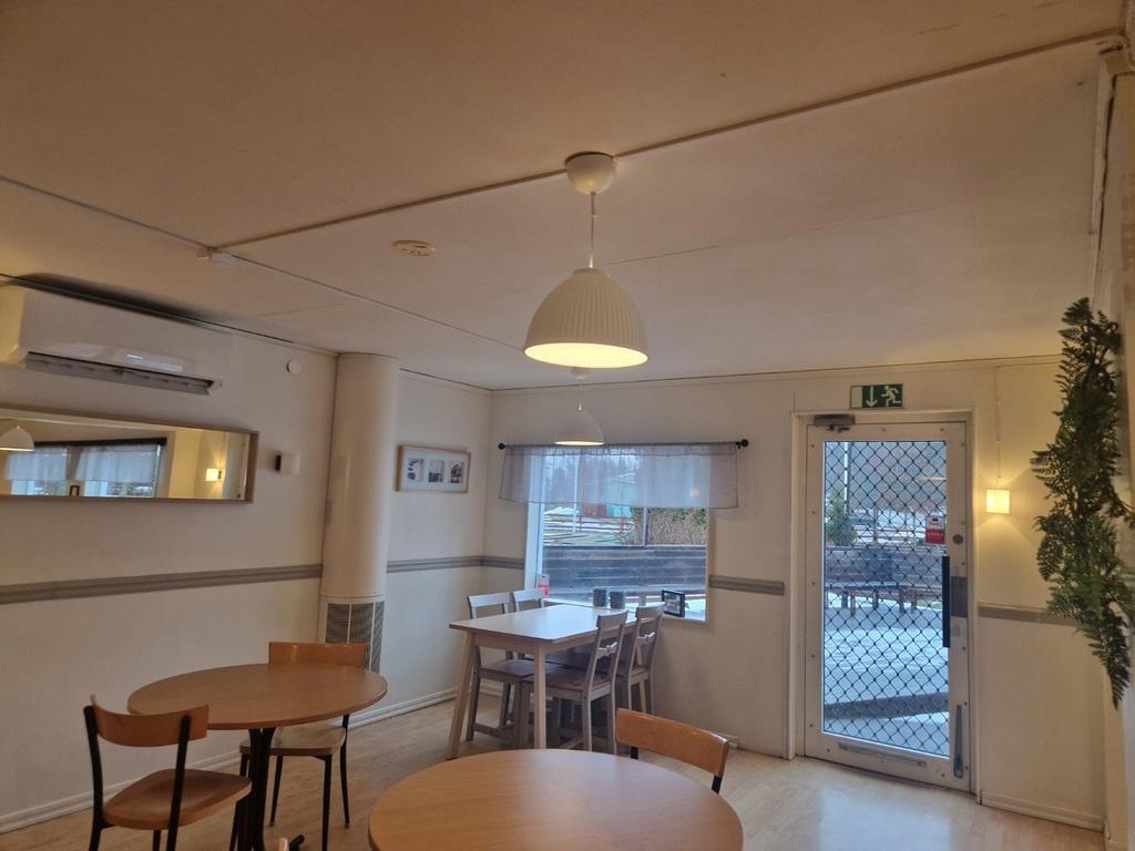I restauranglokalen finns en rymlig kund-wc samt utgång till uteserveringsdelen.