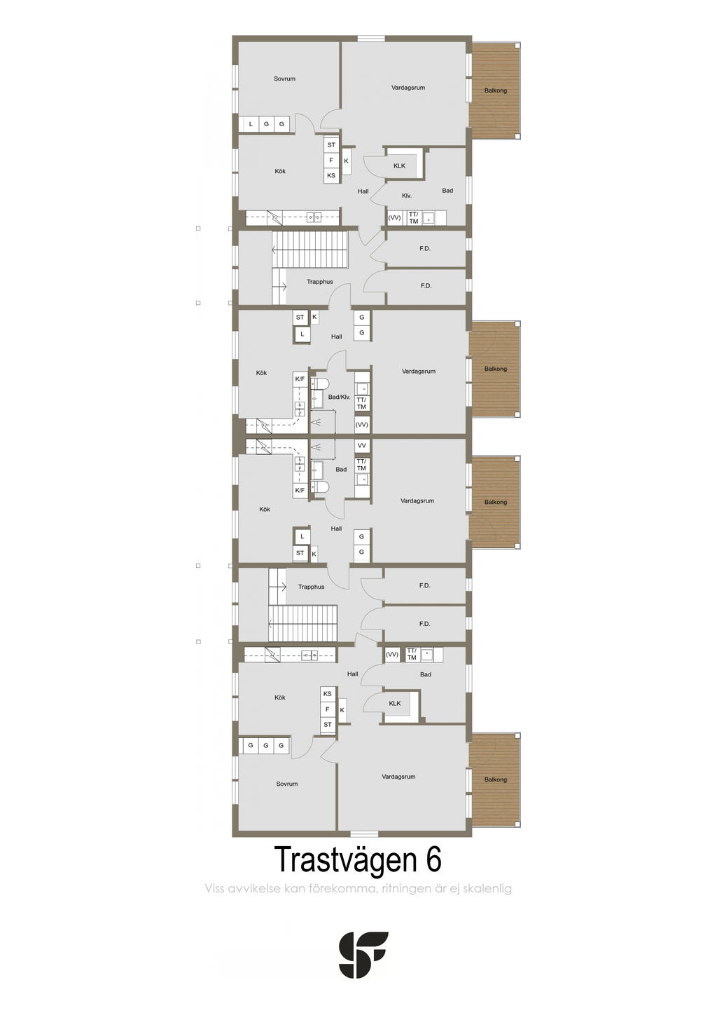 Detta bostadshus på totalt 470m2 boyta erbjuder åtta lägenheter fördelade på två plan, alla med egna balkonger som bjuder in till härliga stunder utomhus.