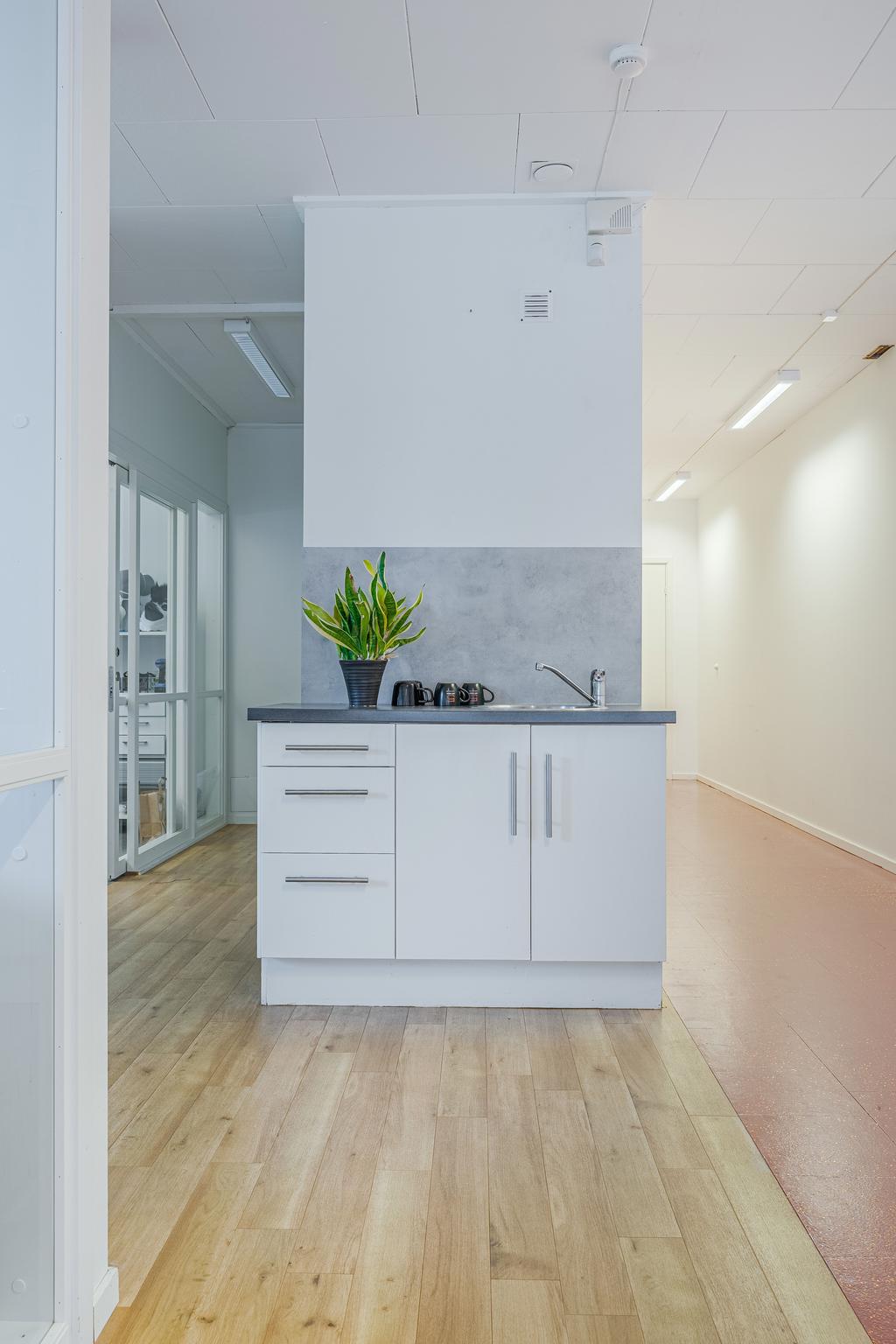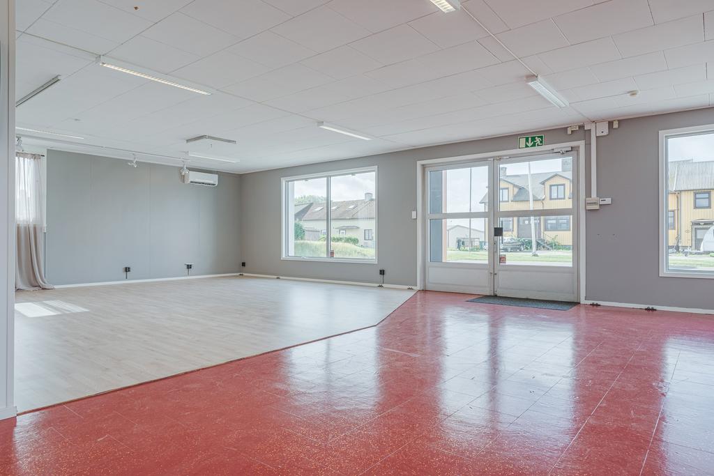På baksidan finns en souterränglokal om ca 270 kvm. Här finns wc och möjlighet till kontor vid behov.