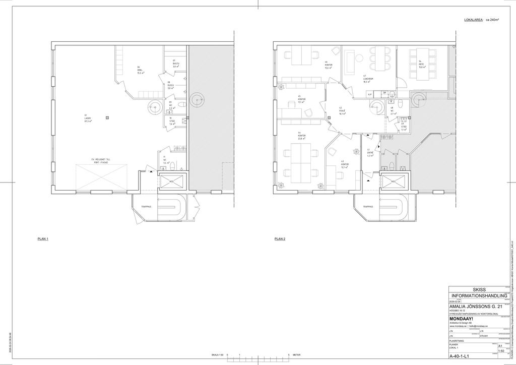 Takhöjd i lagerdelen är ca 3 m och möjlighet till port för smidig in- och utlastning finns. Kontors- och personalytor nås via trapphus med hiss och har även direkt anslutning till lagret via en spiraltrappa, vilket skapar ett effektivt och lättillgängligt flöde mellan ytorna. Här erbjuds välplanerade arbetsytor med kontorsrum i varierade storlekar, konferensrum, förråd, kök/lunchrum, WC samt omklädningsrum med dusch och bastu. Se planlösning nedan.