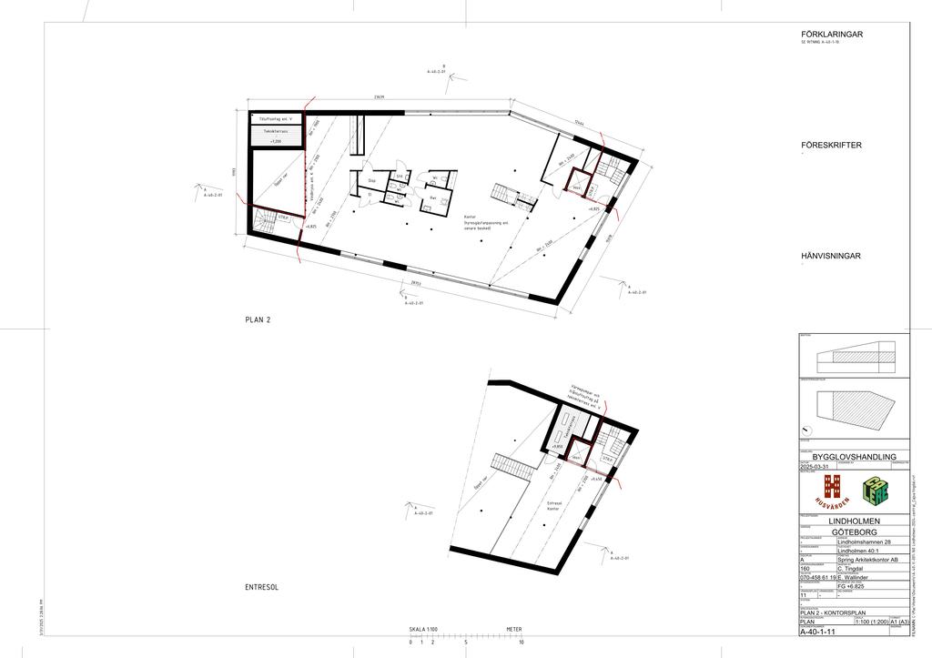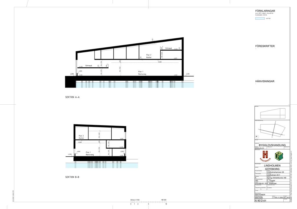 Restaurangdelen omfattar totalt ca 408 kvm varav ca 50 kvm utgörs av ett entresolplan. Den öppna planlösningen tillsammans med stora glaspartier ger ett fantastiskt ljusinsläpp och en imponerande vy över älven och Lindholmshamnen – en perfekt miljö för en levande restaurangupplevelse. Plan två utgörs av en kontorslokal om totalt ca 448 kvm inklusive ett entresolplan om ca 79 kvm.