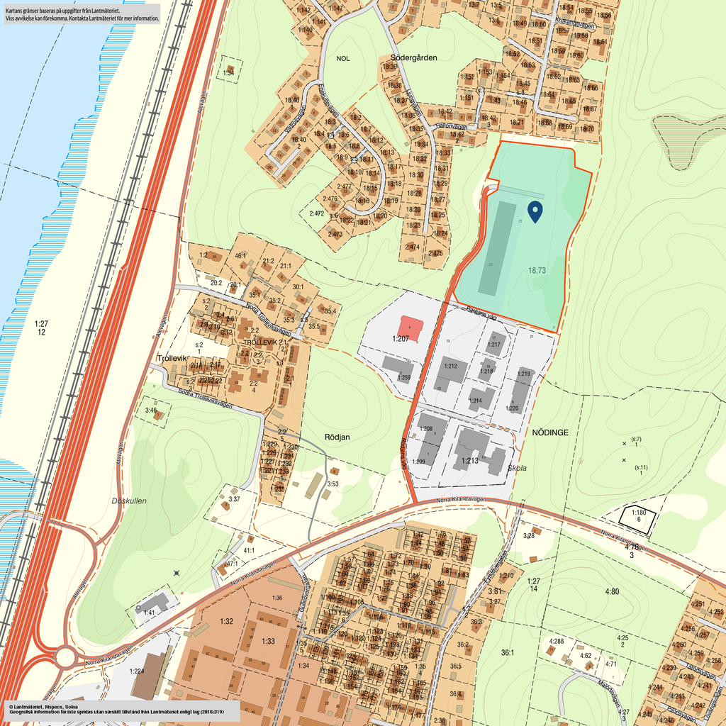 Bra läge i Ale, Nödinge med nära anslutning till E45an, där du tar dig till Göteborg på ca 25 min. Ale Torg ligger ca 1,5 km från från fastigheten där du även finner Nödinge tågstation. I området omges man av handel och andra industrifastigheter.