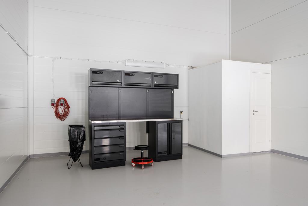 Andra lokalen har med fördel installerats med entresolplan vilket skapa upp till 30 kvm extra för kontor eller förvaring. Här kan du får möjlighet att utveckla din hobby eller om bruka i din verksamhet eller bara förvara båt, husbil, bil eller andra intressen.