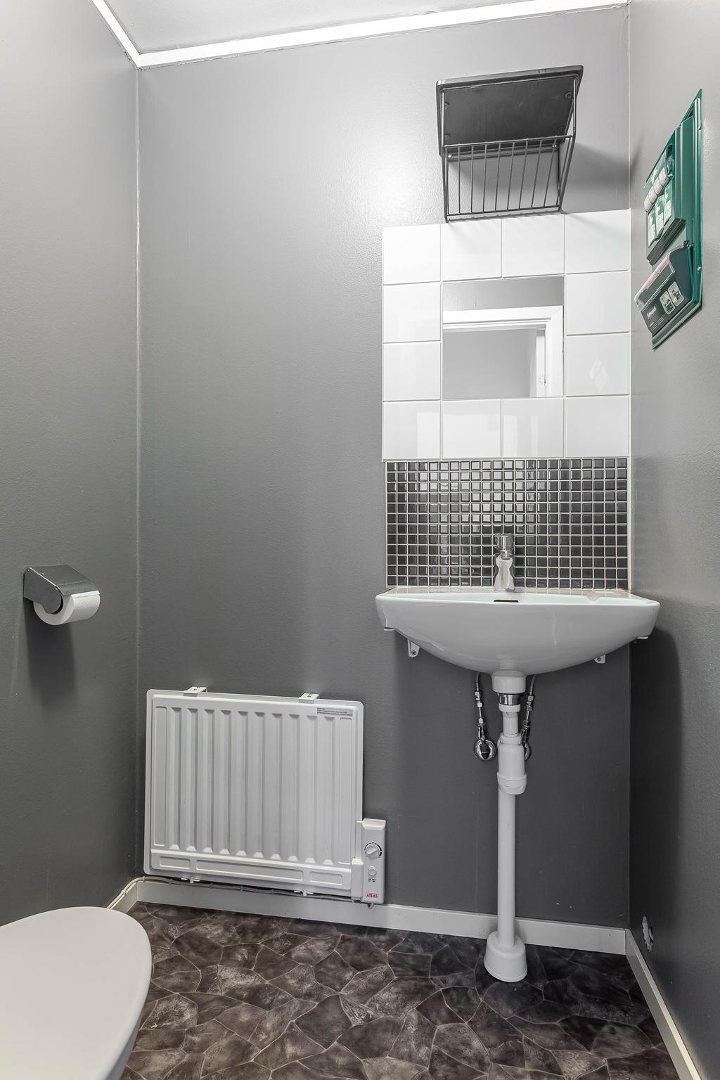 Fastigheten är utrustad med fräscha personalutrymmen, portar för enkel logistik och ett 26 kvm stort valv som ger unika möjligheter för verksamheter med krav på extra säkerhet eller värdeförvaring.