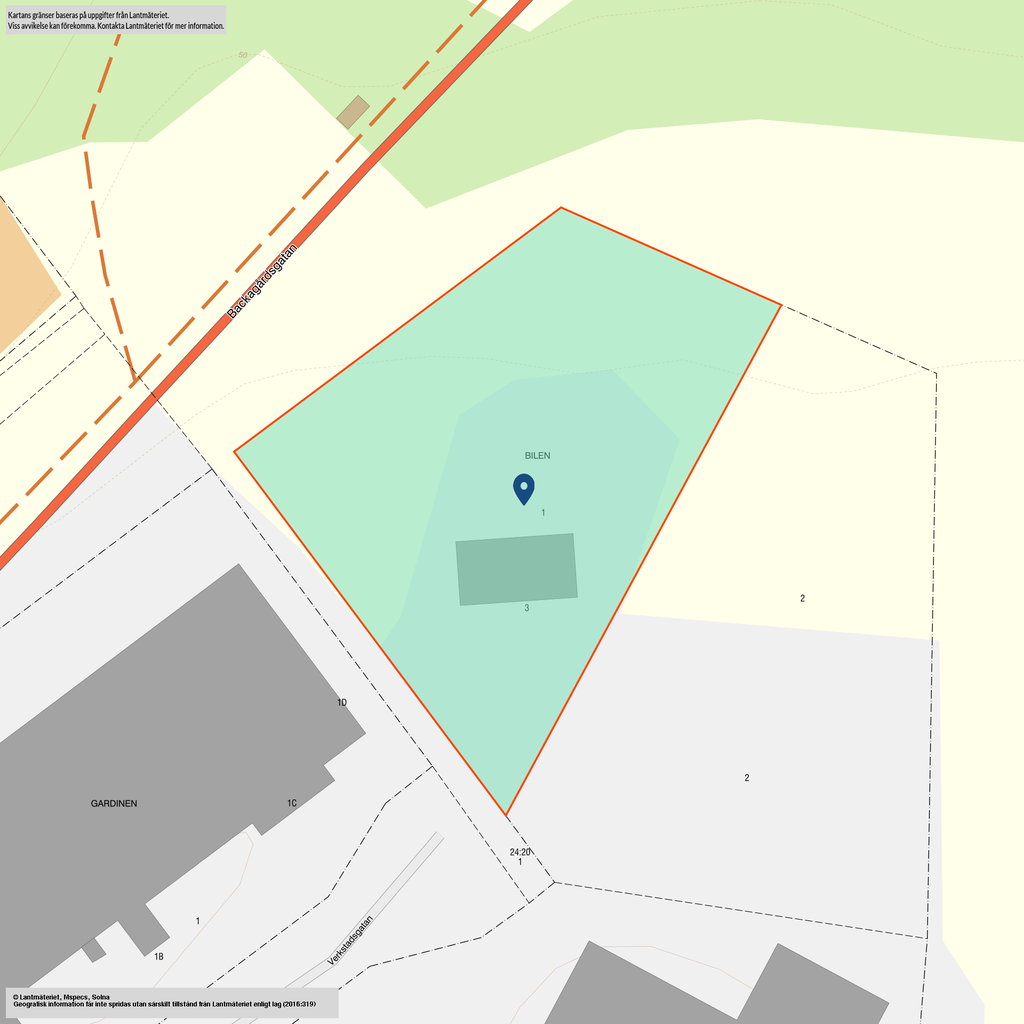 Utanför finns generösa parkeringsytor och en stor tomt om nästan 6 000 kvm, vilket skapar god tillgänglighet för både kunder, personal och leveranser.
