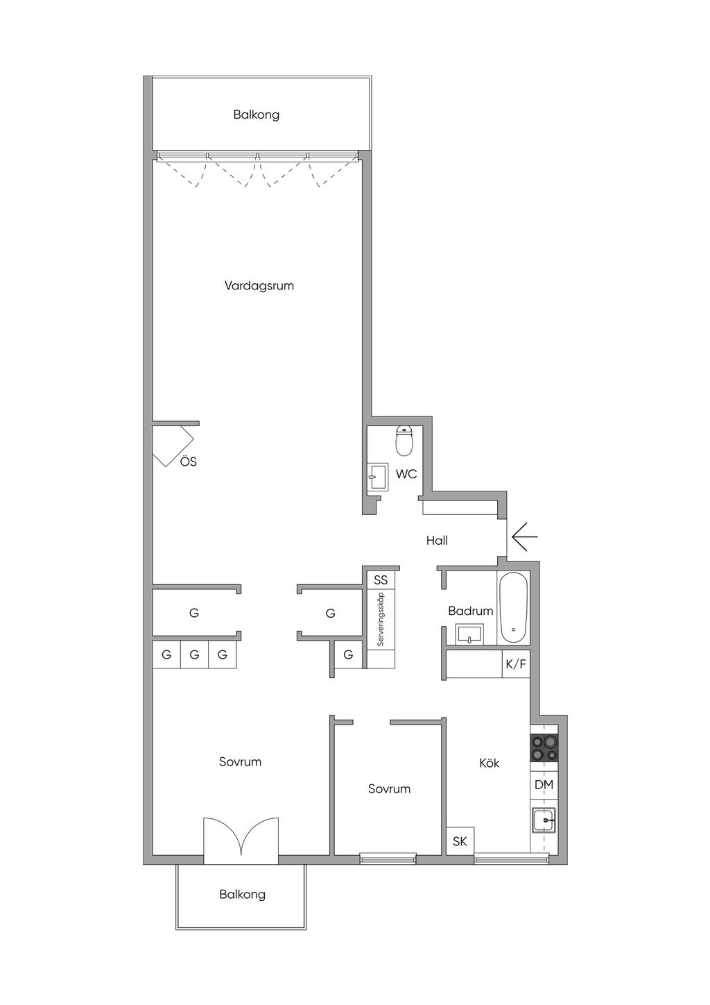 Invid Tessinparken med två balkonger och öppen spis! Möjlig 4:a.